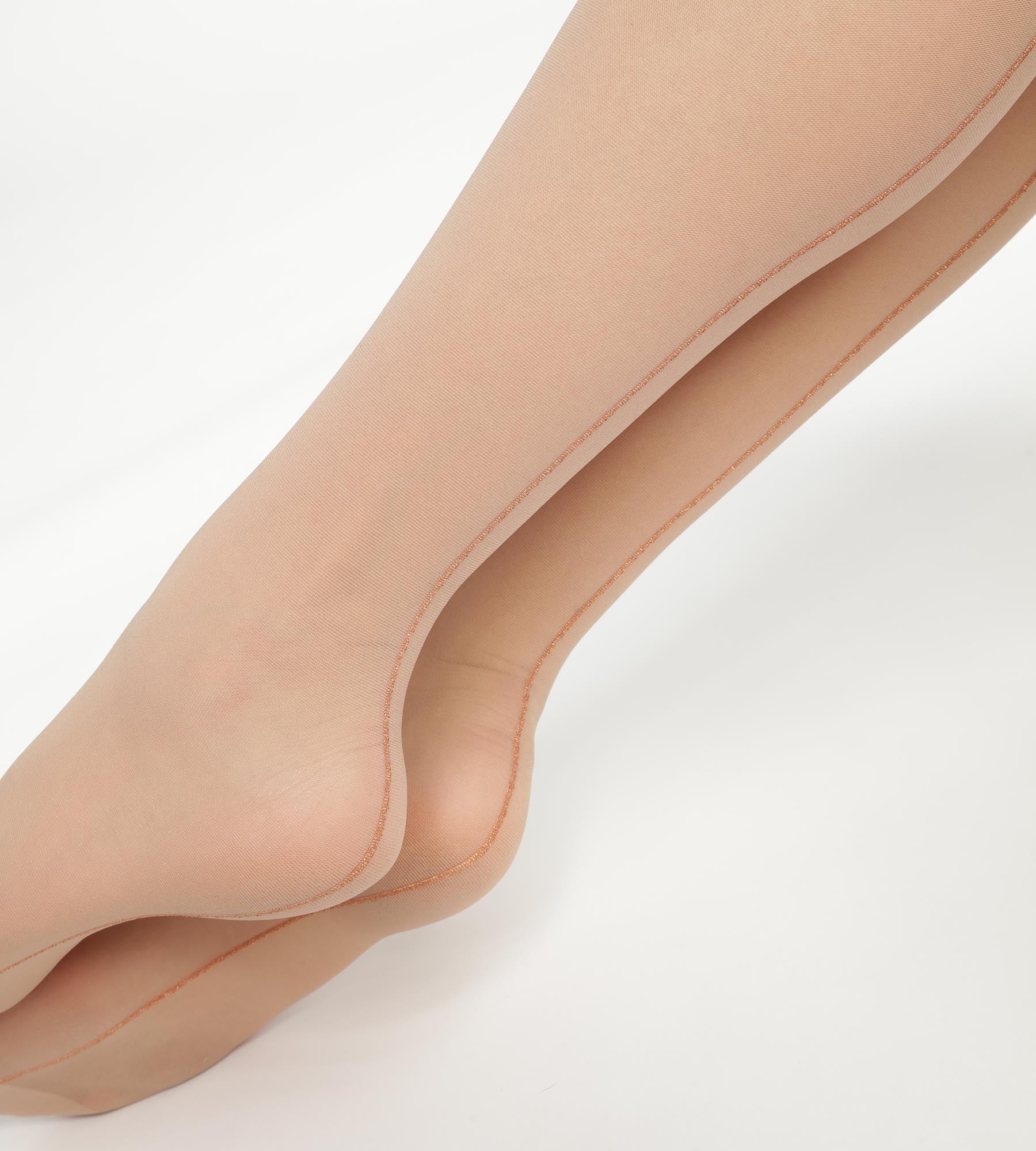 Fall for the luxurious look of Dim Style Beige sheer tights with shiny gold lurex edging!