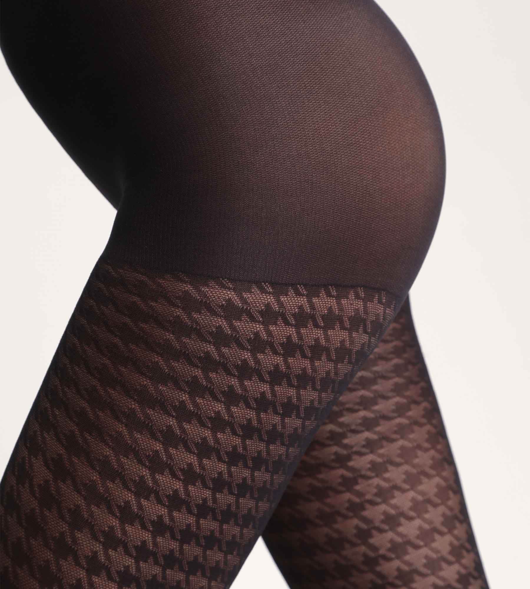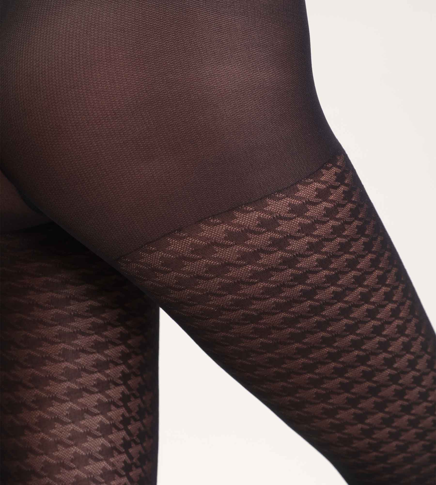 Show off a couture look with DIM Style women's semi-opaque fantasy tights in a black houndstooth pattern.