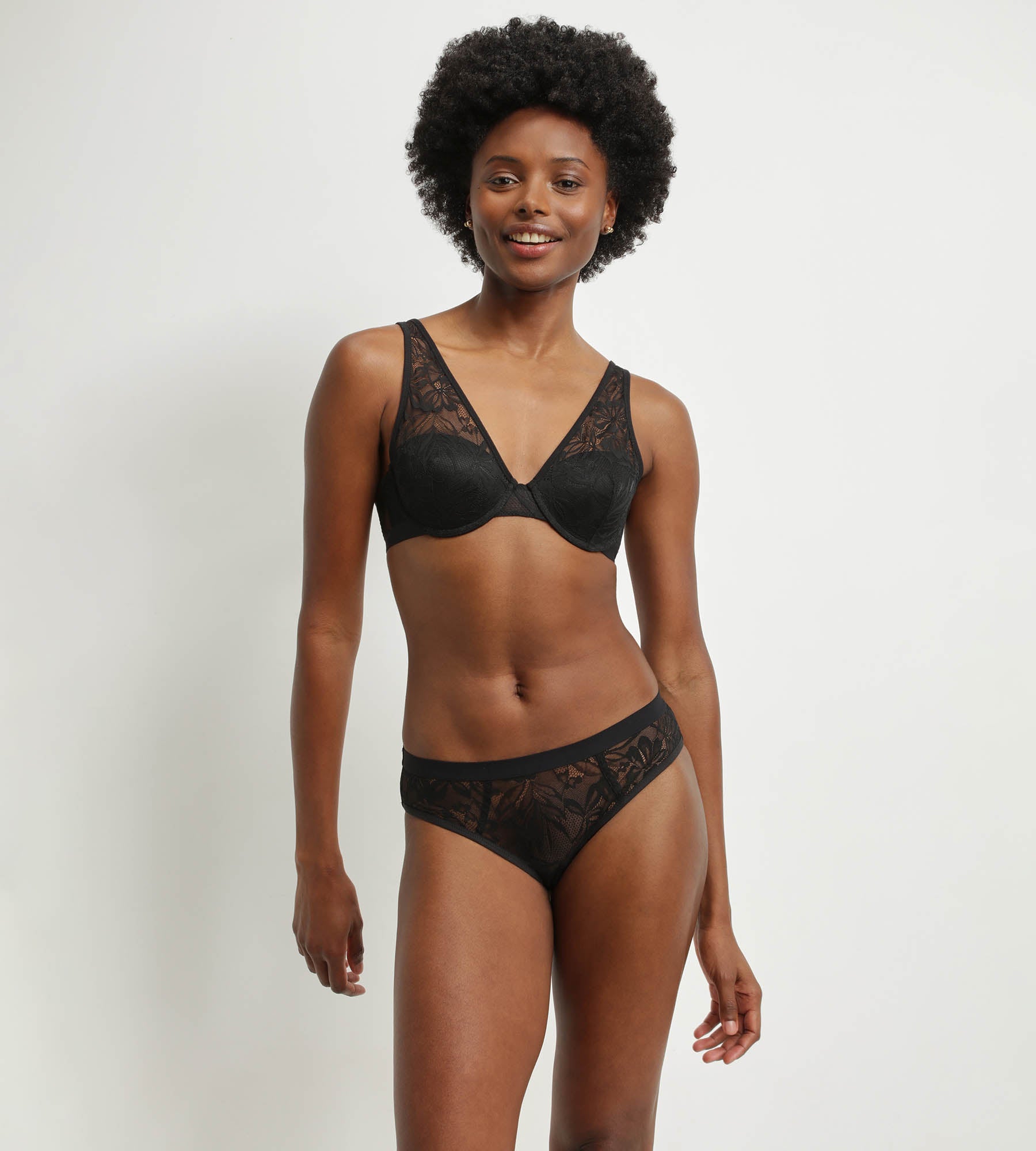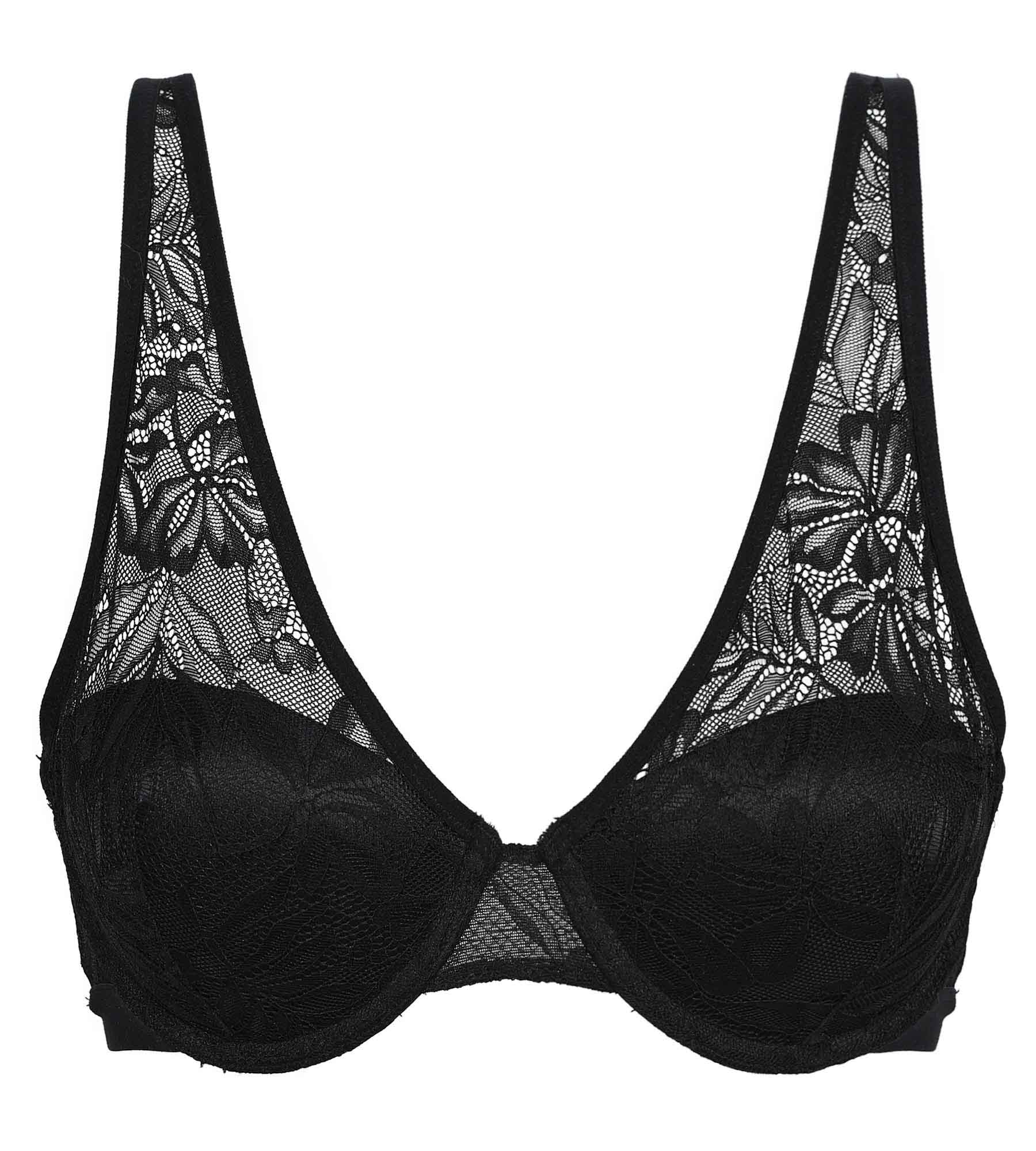 Fall under the spell of Dim's Mod underwired scarf bra in trendy, sophisticated black tropical lace!