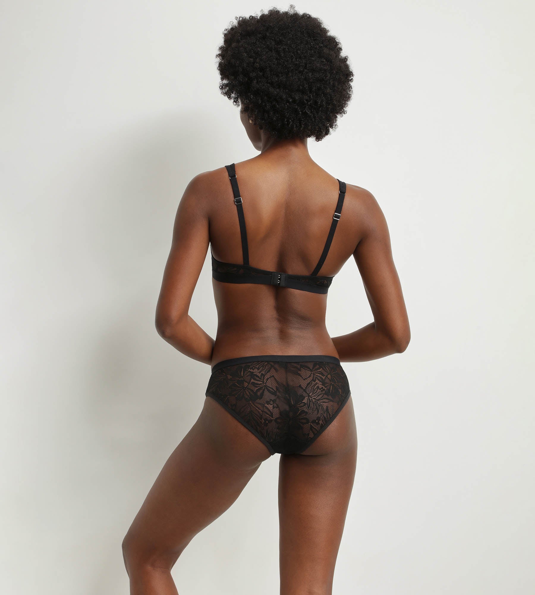 Look feminine and modern with a lace bra Mod by Dim with contrasting finishes inspired by sportswear style! Designed to provide natural support while enhancing the figure, the transparent braDim's fine foam cups gently shape and support the bust. Thanks to its light underwiring and decorative scarf shape, it emphasises feminine curves and accessorises any outfit! We love its tropical motifs and black colour, making it both iconic and elegant.