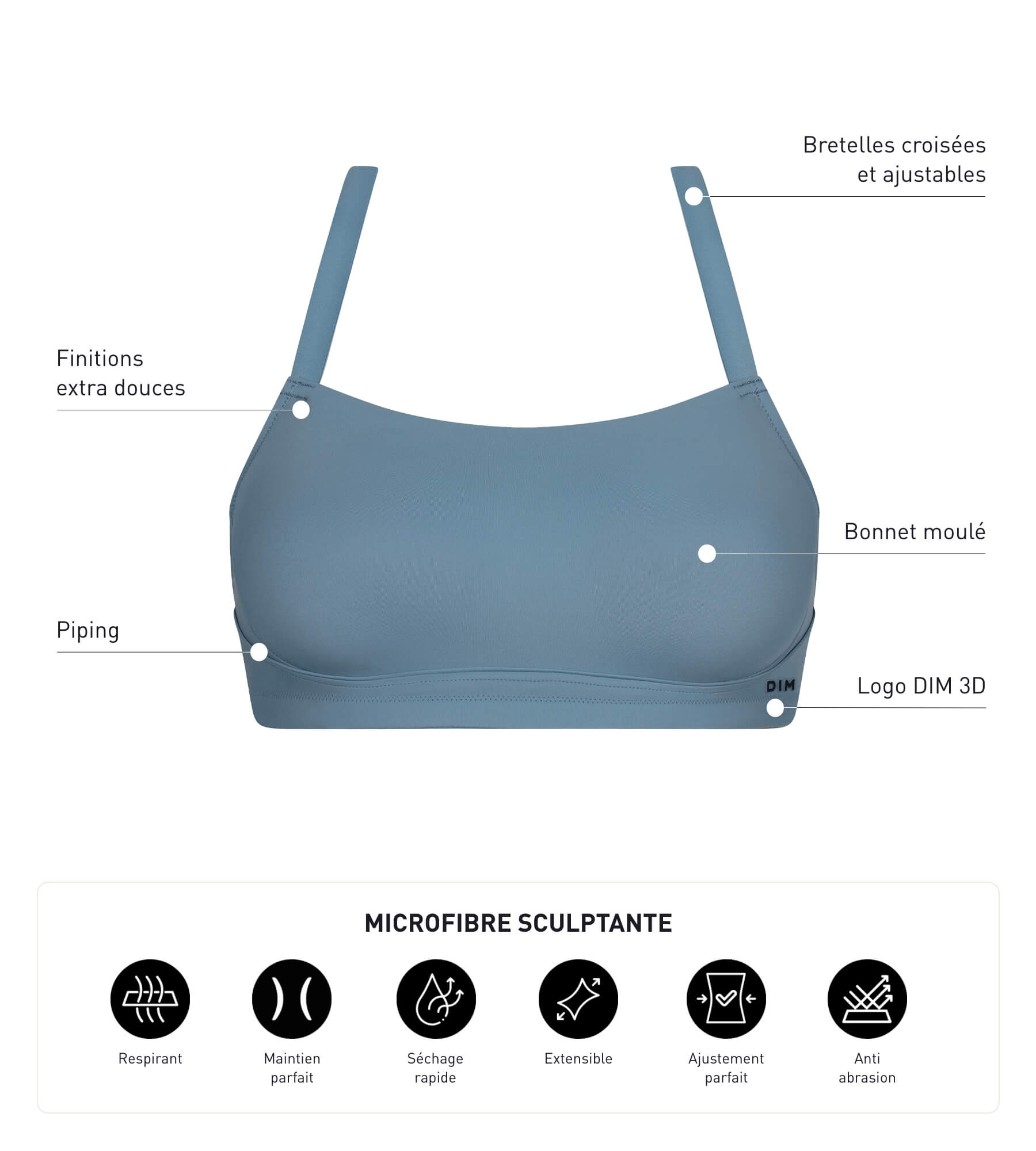Support your breasts with efficiency and style thanks to the Dim Move Blue Jean microfibre non-wired bra!