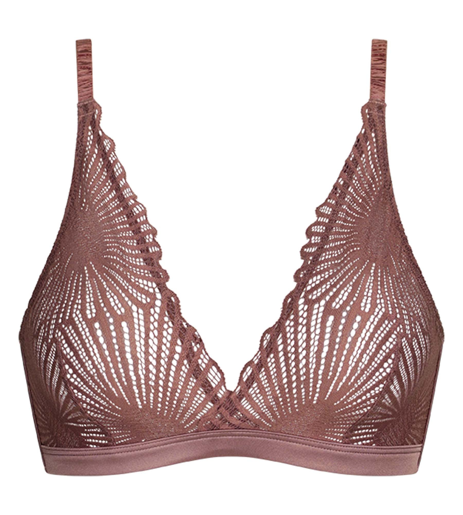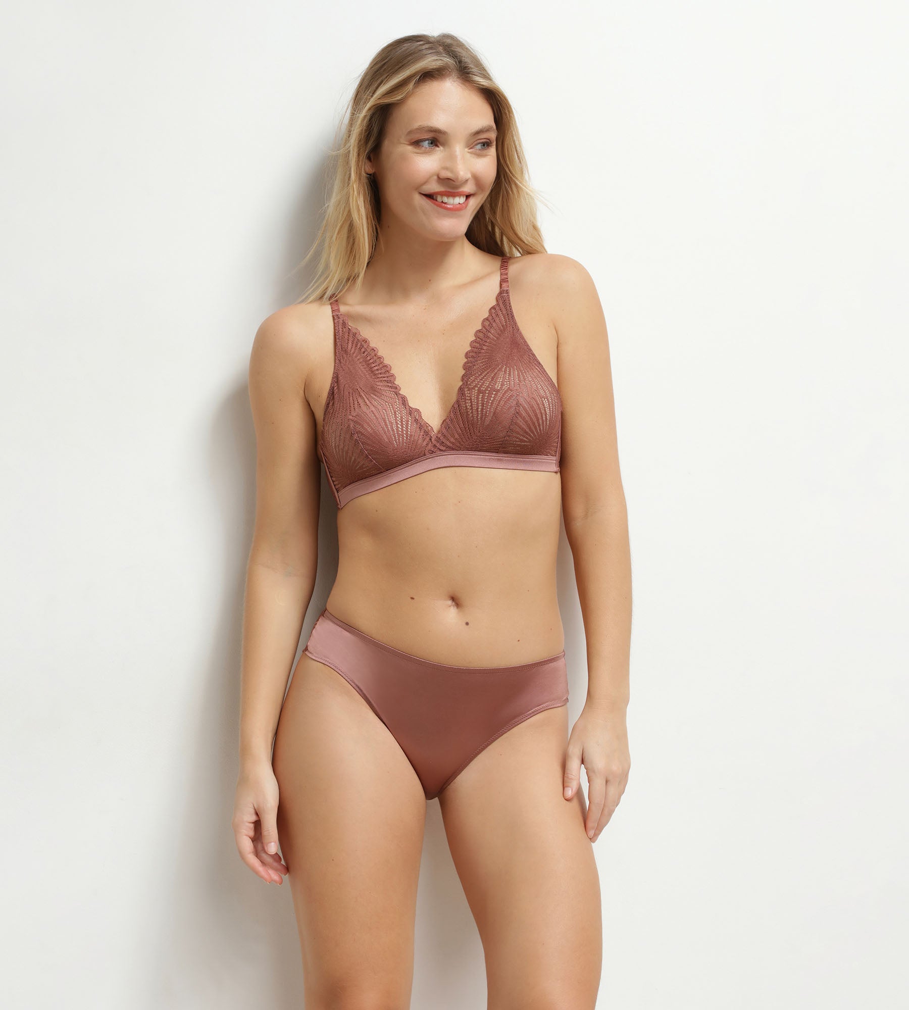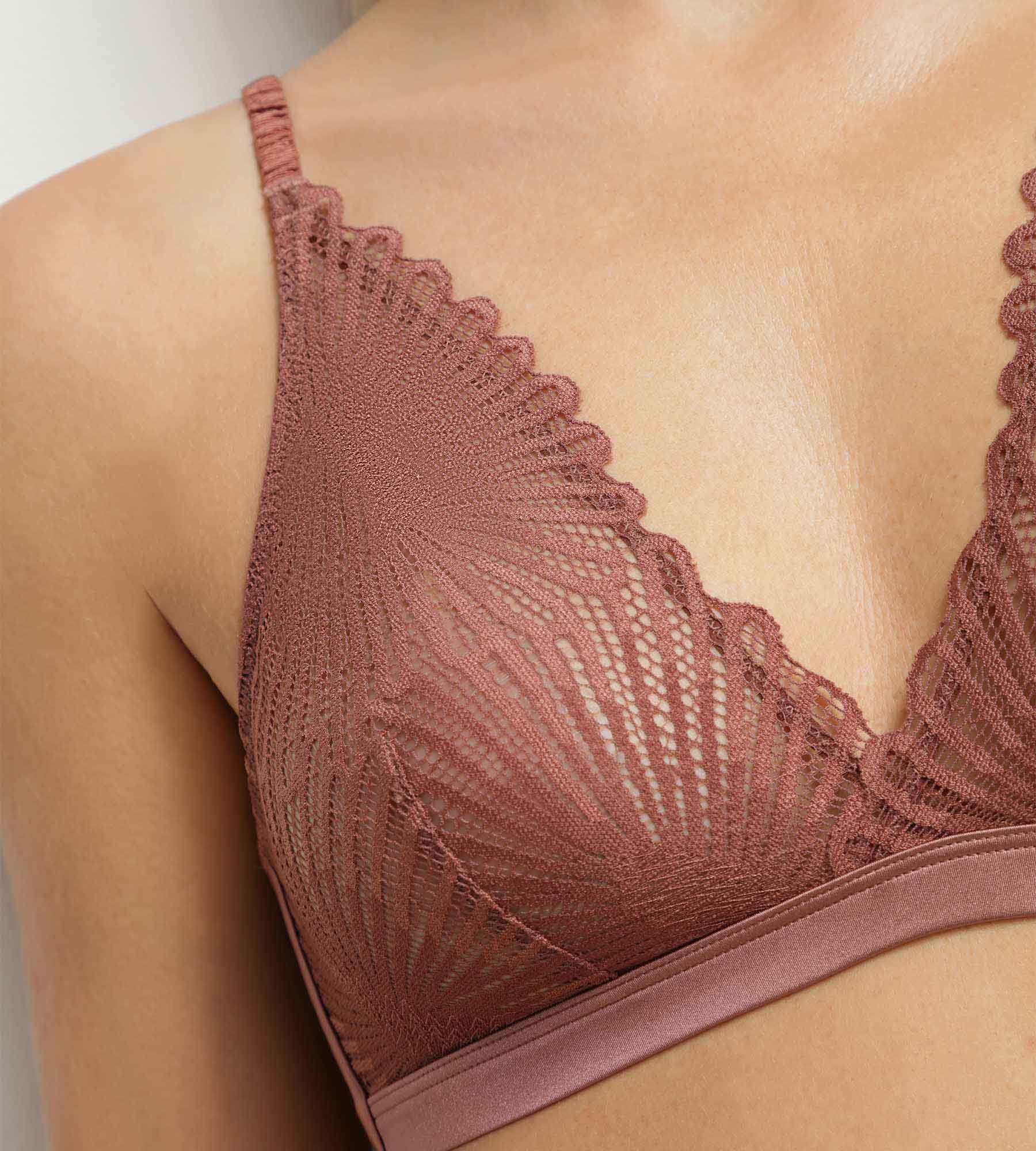 With its supple lace and non-wired cut, the Dim Chocolove Nutmeg brown bra envelops the bust in soft, refined comfort.