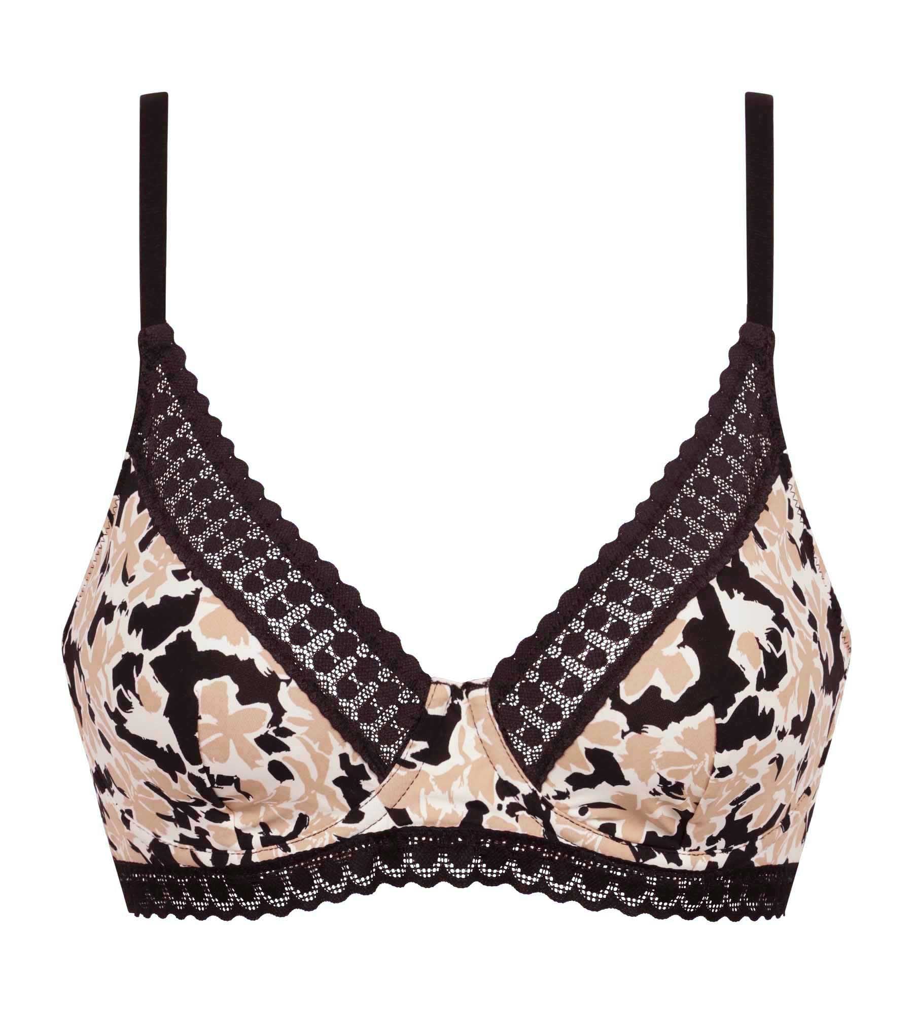 Thoughtfully designed for everyday wear, the Daily Micro corbeille bra in printed version is the perfect combination of comfort and féminit;. Its supple microfibre moulds to the shape with ease, while the wide band and underwiring provide soft but effective support. The all-over floral pattern in natural beige and brown adds character to your lingerie. Finally, its black lace, placed on the neckline and basque, structures and highlights the silhouette with finesse.