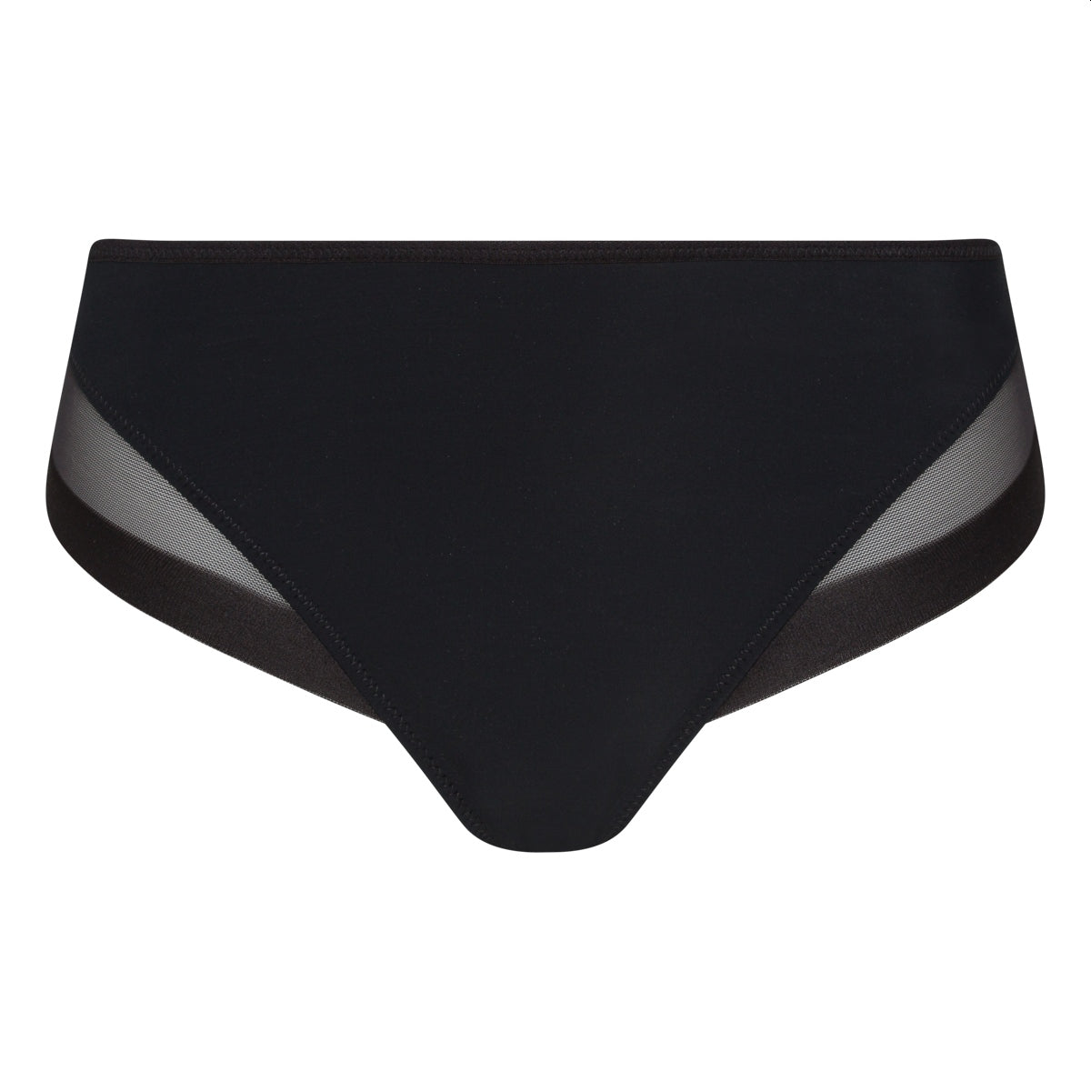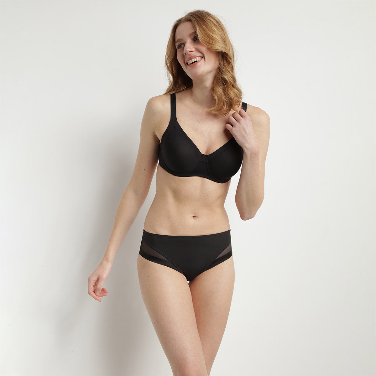 The classic, elegant black colour. The flat finishes, invisible under your clothes. The transparent tulle bands on the front and back. Update your basics with the Generous black microfibre and tulle panties from Dim! Classic and timeless, the Generous briefs get a makeover with ultra modern tulle details on the back and front, and a more covering shape which adapts perfectly to all body types. For a chic look, pair them with the matching Generous bra!