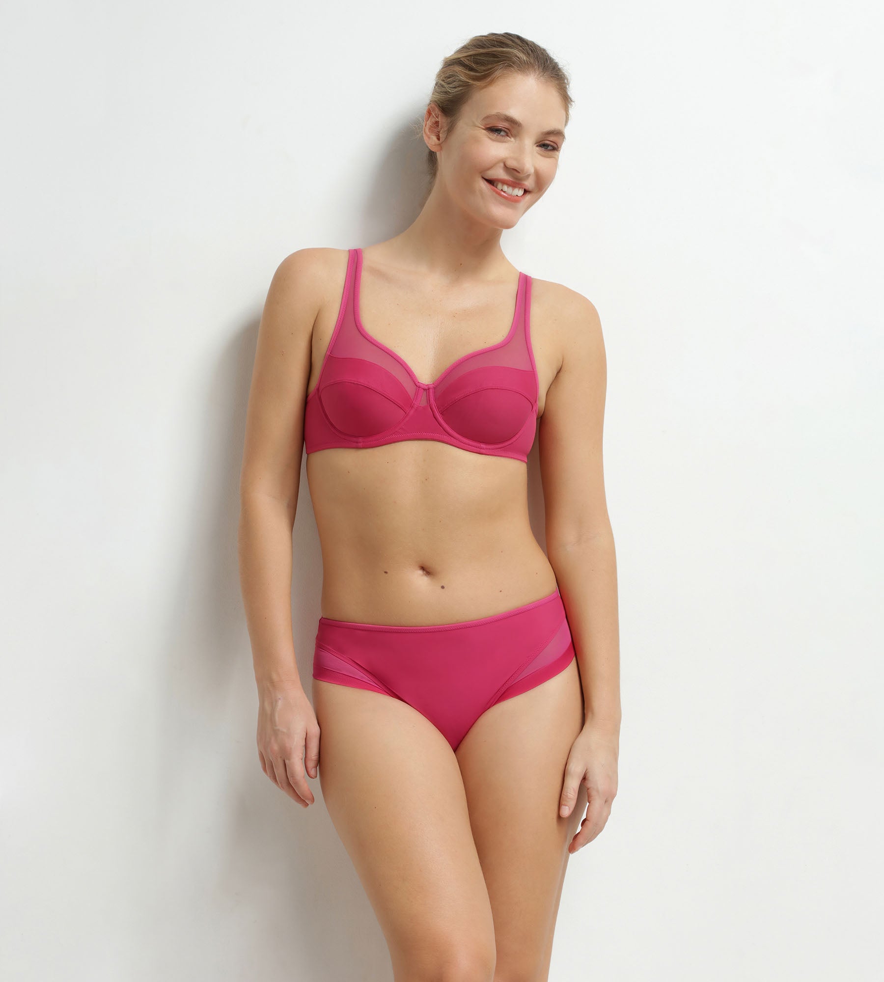 Brighten up your lingerie drawer with the Dim Generous women’s knickers in microfibre and vibrant raspberry tulle, adding a touch of pep to your everyday life!