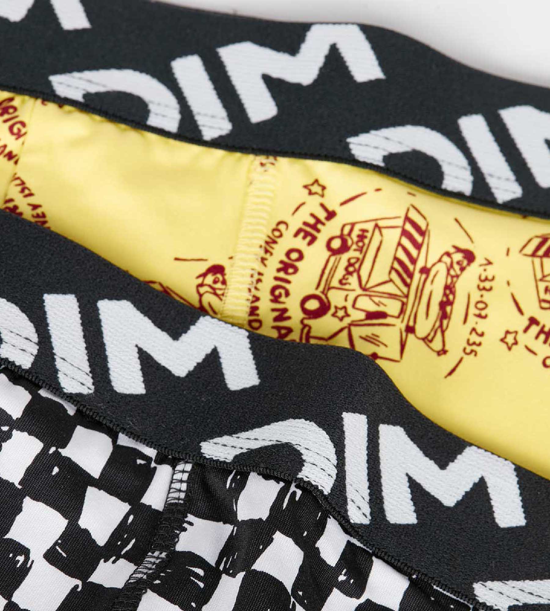 The "American Diner" style takes hold of its set of 2 Dim Micro children's underwear with Damier and Pepperoni prints , graphics and fun!
