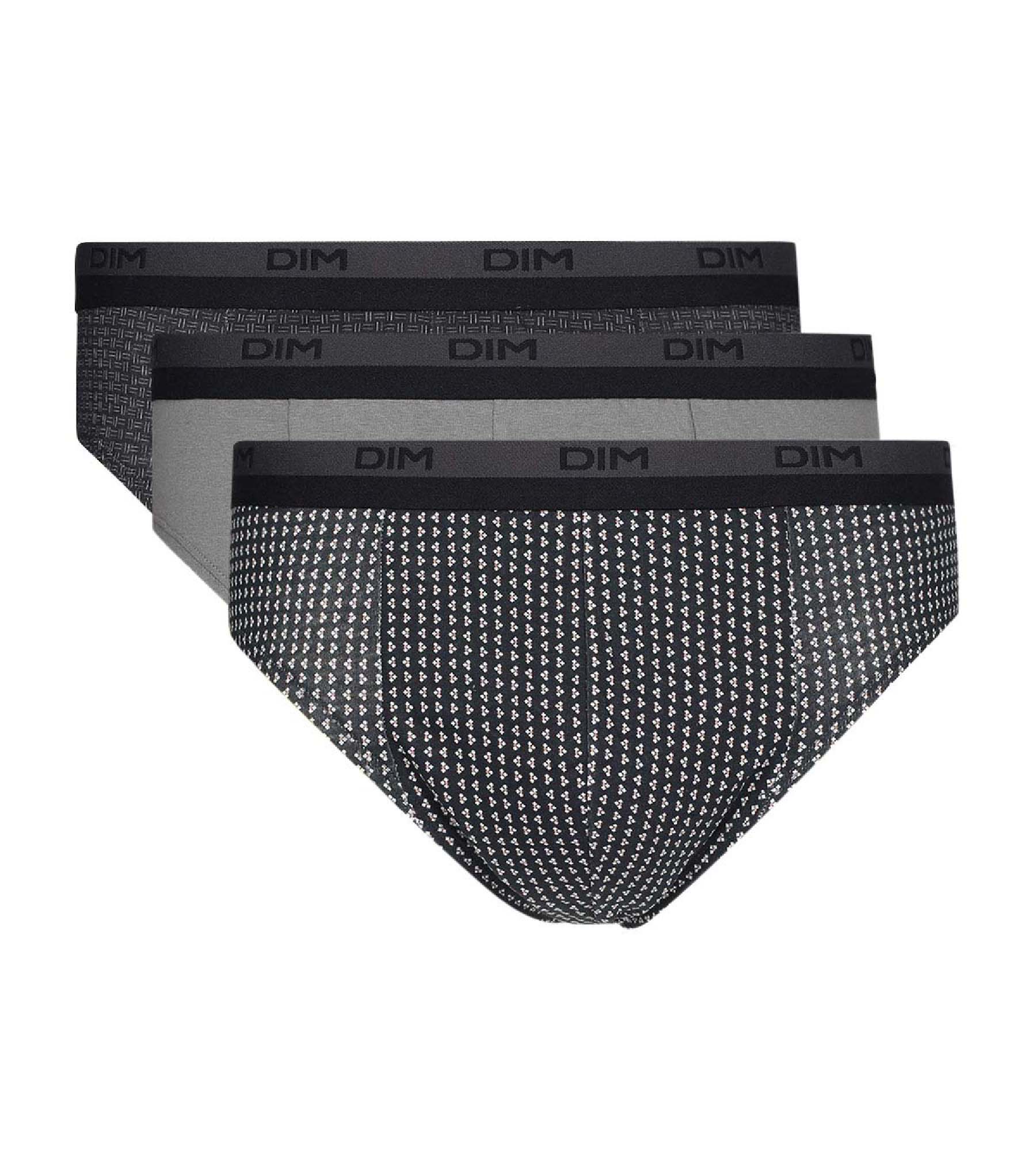 Fall for the fancy style of this set of 3 men's briefs 100% cotton Dim Cotton Print Gray with very graphic cubic patterns!
