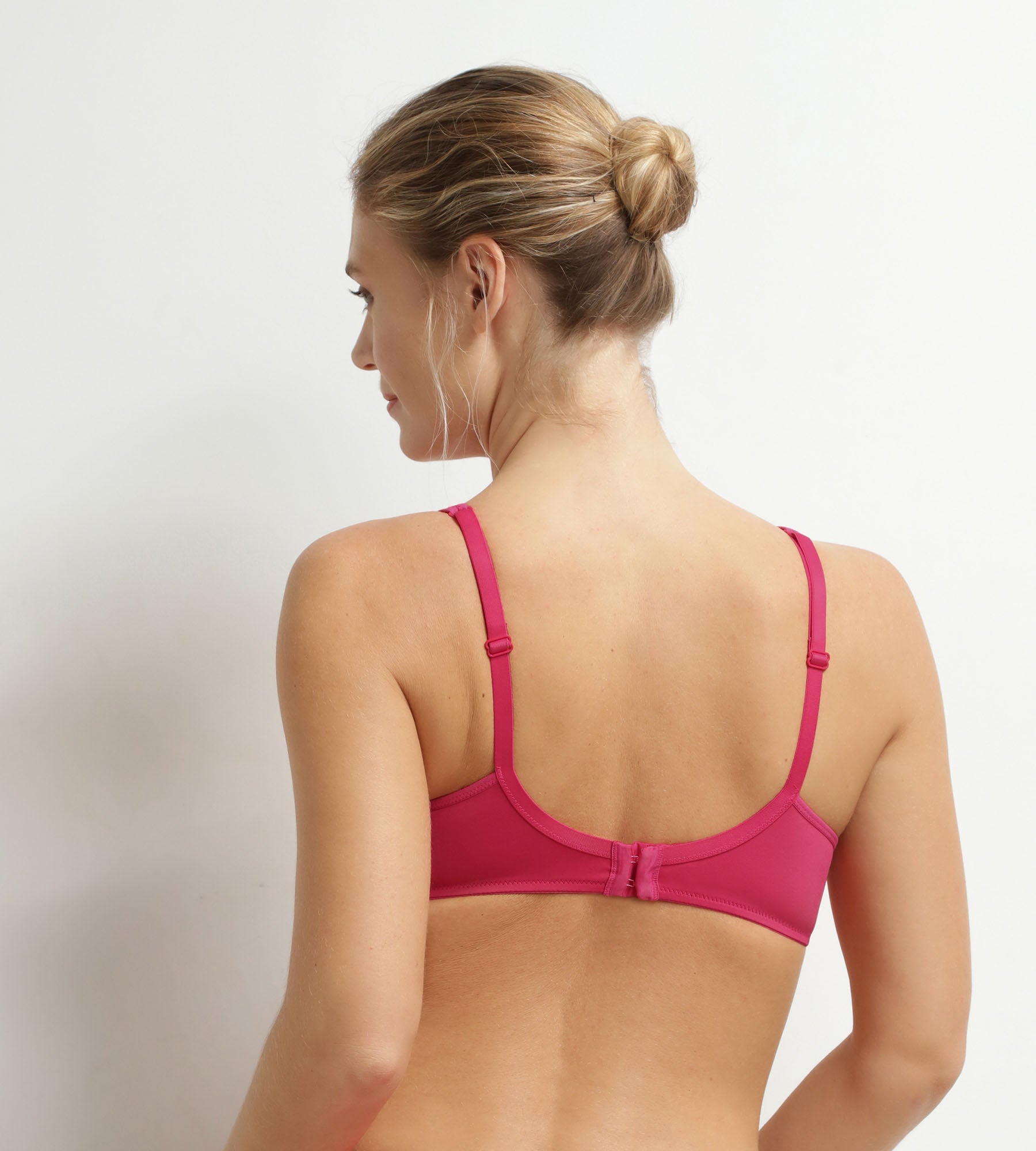 Combine style and absolute comfort with the Dim Generous Raspberry full-cup bra! Made from stretchy microfibre, this underwired bra moulds to your shape with flexibility and offers perfect support. The enveloping cups and discreet tulle create a natural neckline, while the wide basque effectively supports all bust sizes. A true large size bra, Dim Generous offers the ideal combination of comfort, femininity and discretion. The energetic and modern Raspberry shade will brighten up your everyday lingerie.