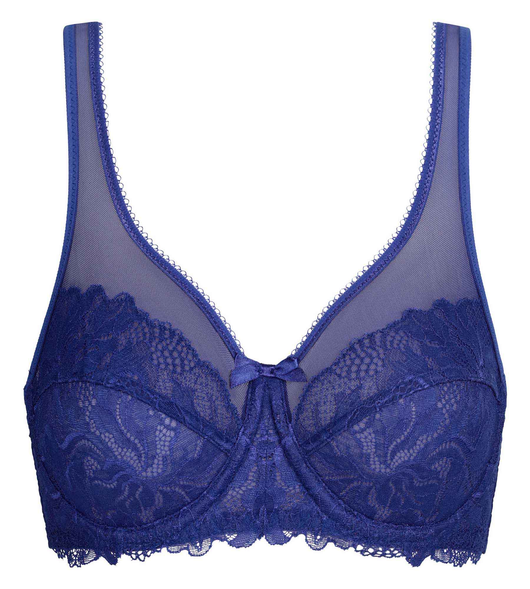 Combine support and elegance with the Generous Essentiel full cup bra by Dim, in timeless Captain Blue lace.