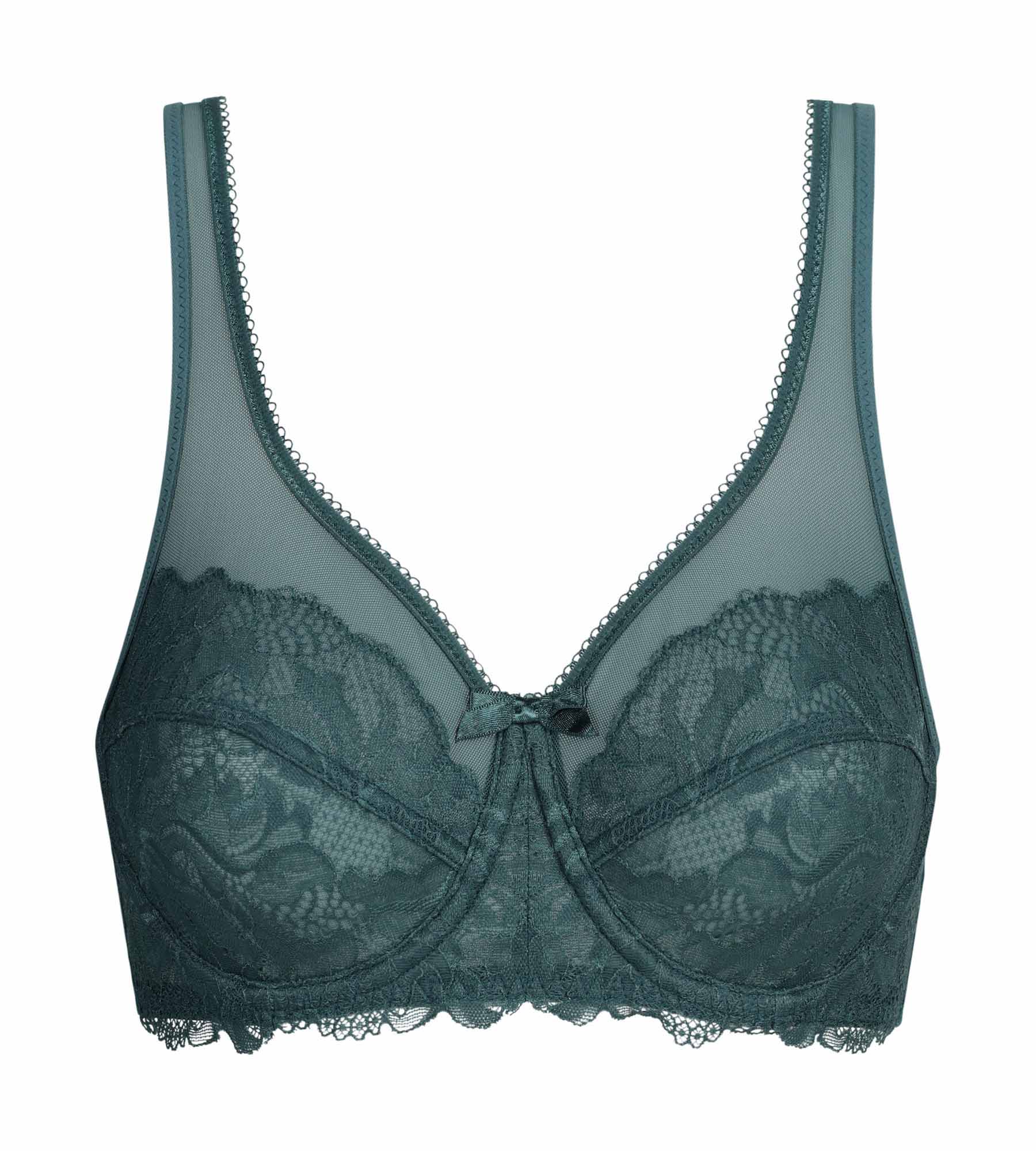 Refined and luminous, the Generous Essentiel Dim full cup bra in emerald green lace combines support and elegance for everyday wear.