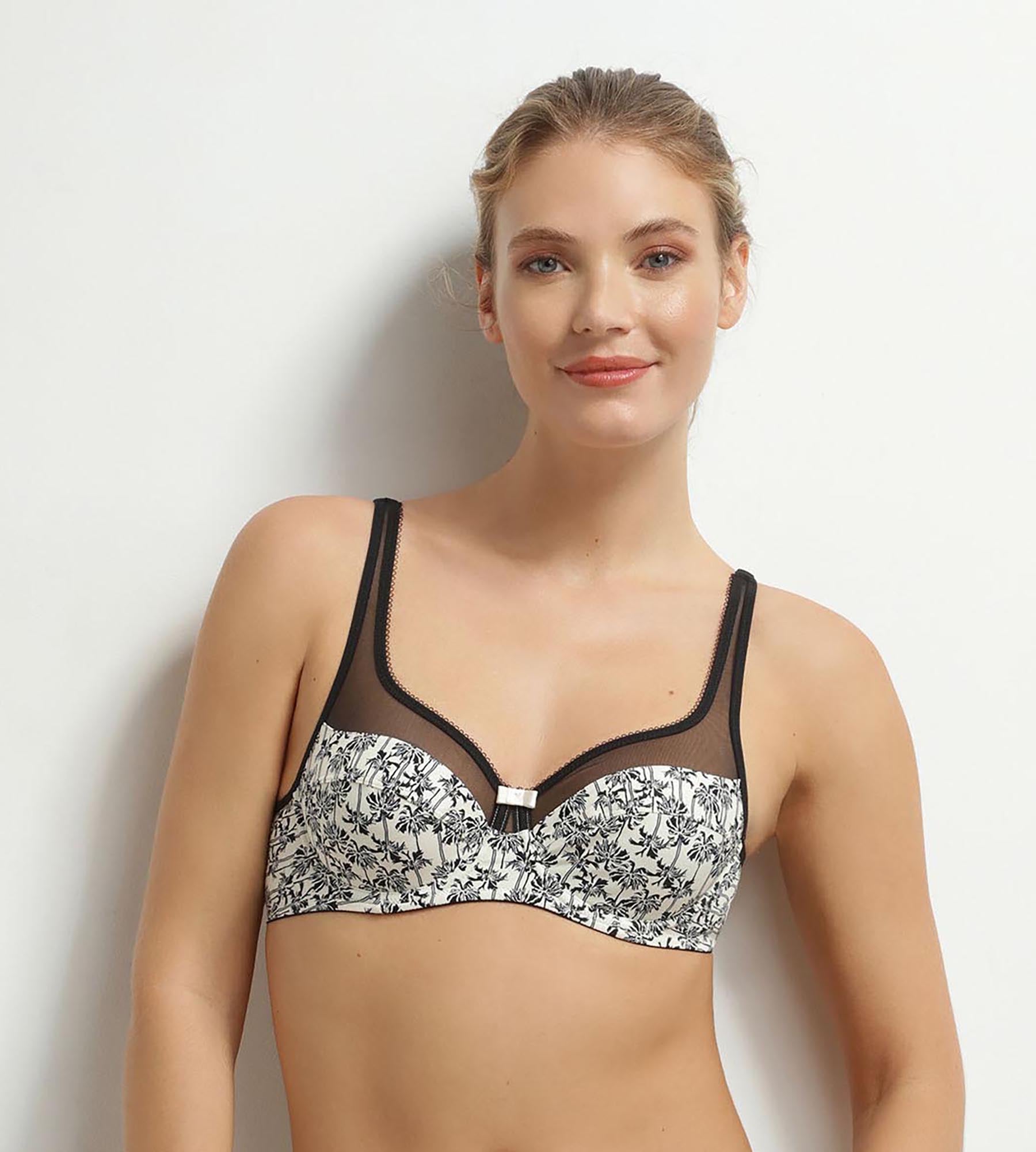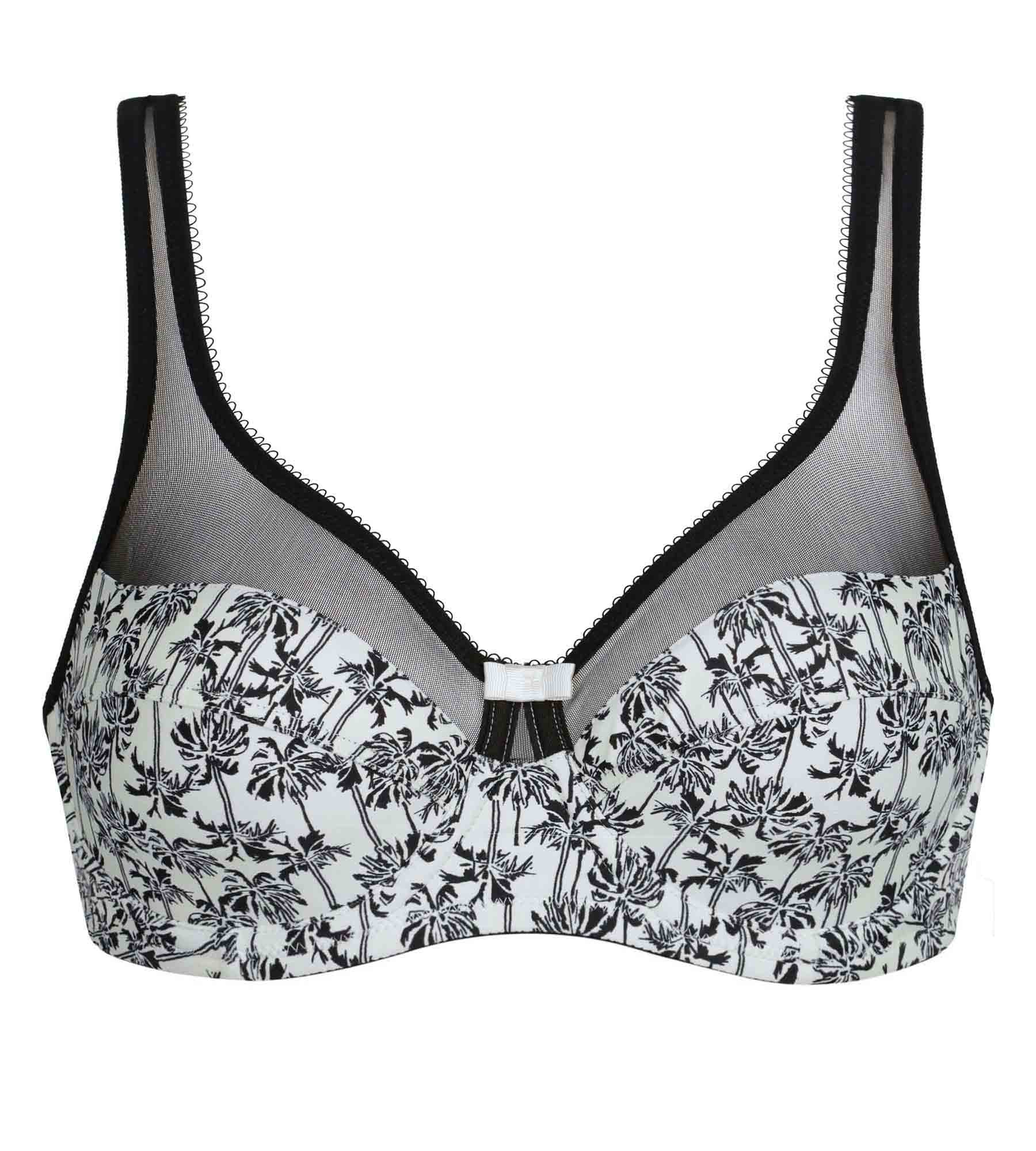 Generous full-cup bra in microfibre and tulle with palm tree pattern