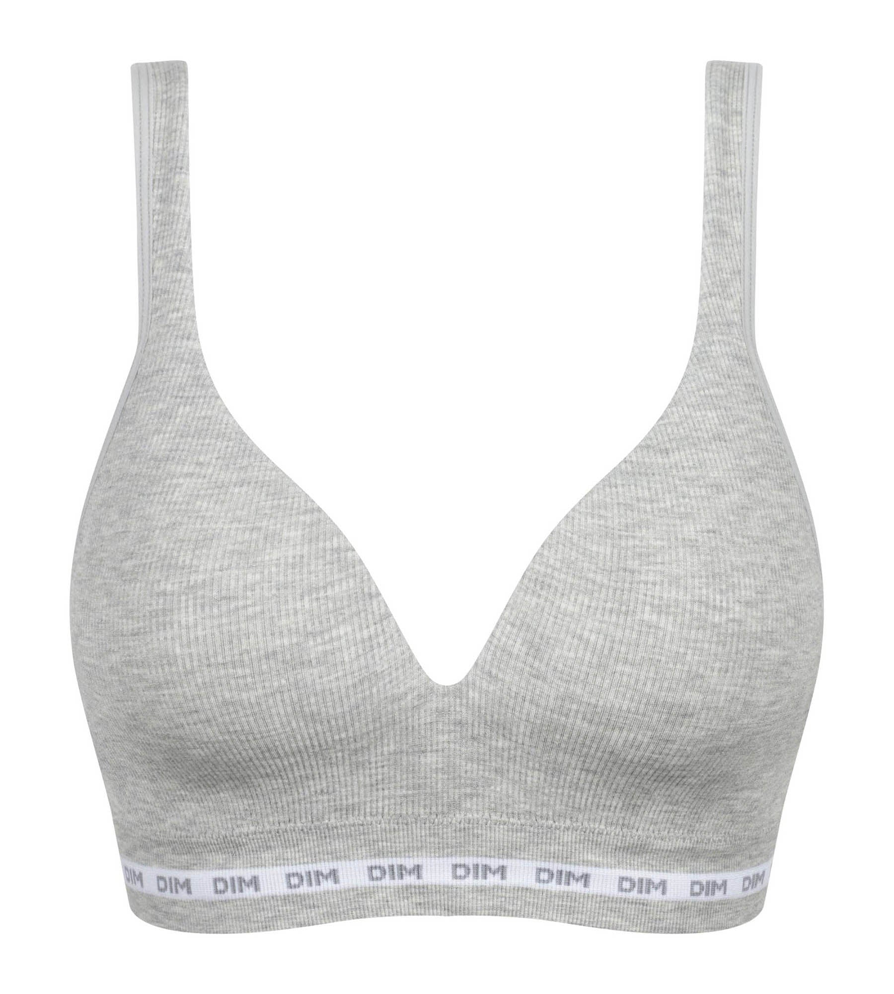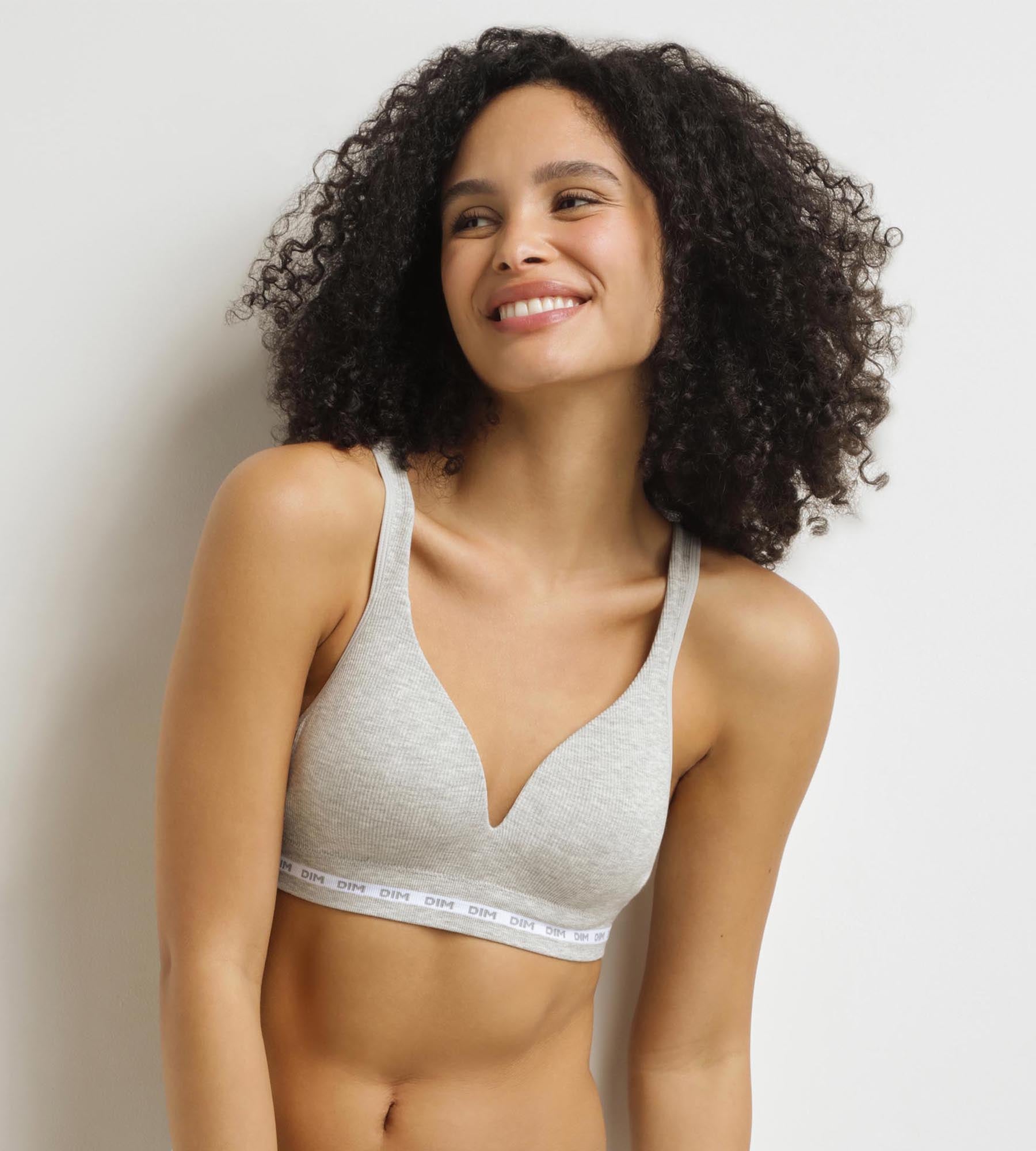 Comfortable and stylish, this padded bra from the Dim Icons line ticks all the boxes. Its underwire-free triangle cut &eacuates shapes gently, while the moulded cups offer a discreet curve. The light, stretchy Chinacute Grey fabric makes it the perfect bra for active days or cocooning moments.