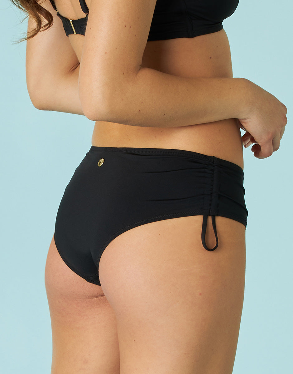 Essential lines and maximum comfort for the high-waisted bikini bottom from the Essential Micro series. Its enveloping design offers a comfortable and sculpting fit, while the adjustable sides with drawstrings allow you to customize the fit according to your needs. The stretch microfiber guarantees softness and freedom of movement, making it ideal for every moment at the beach.