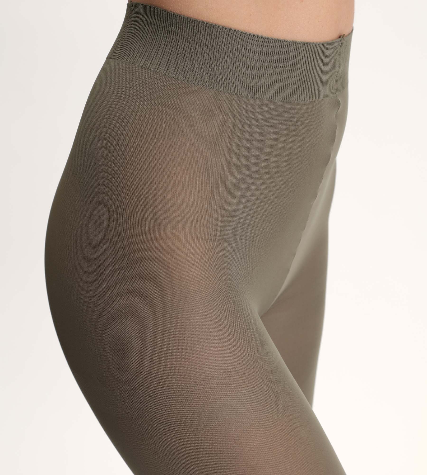 Strong style and soft comfort with the DIM 50D opaque tights in khaki microfibre!