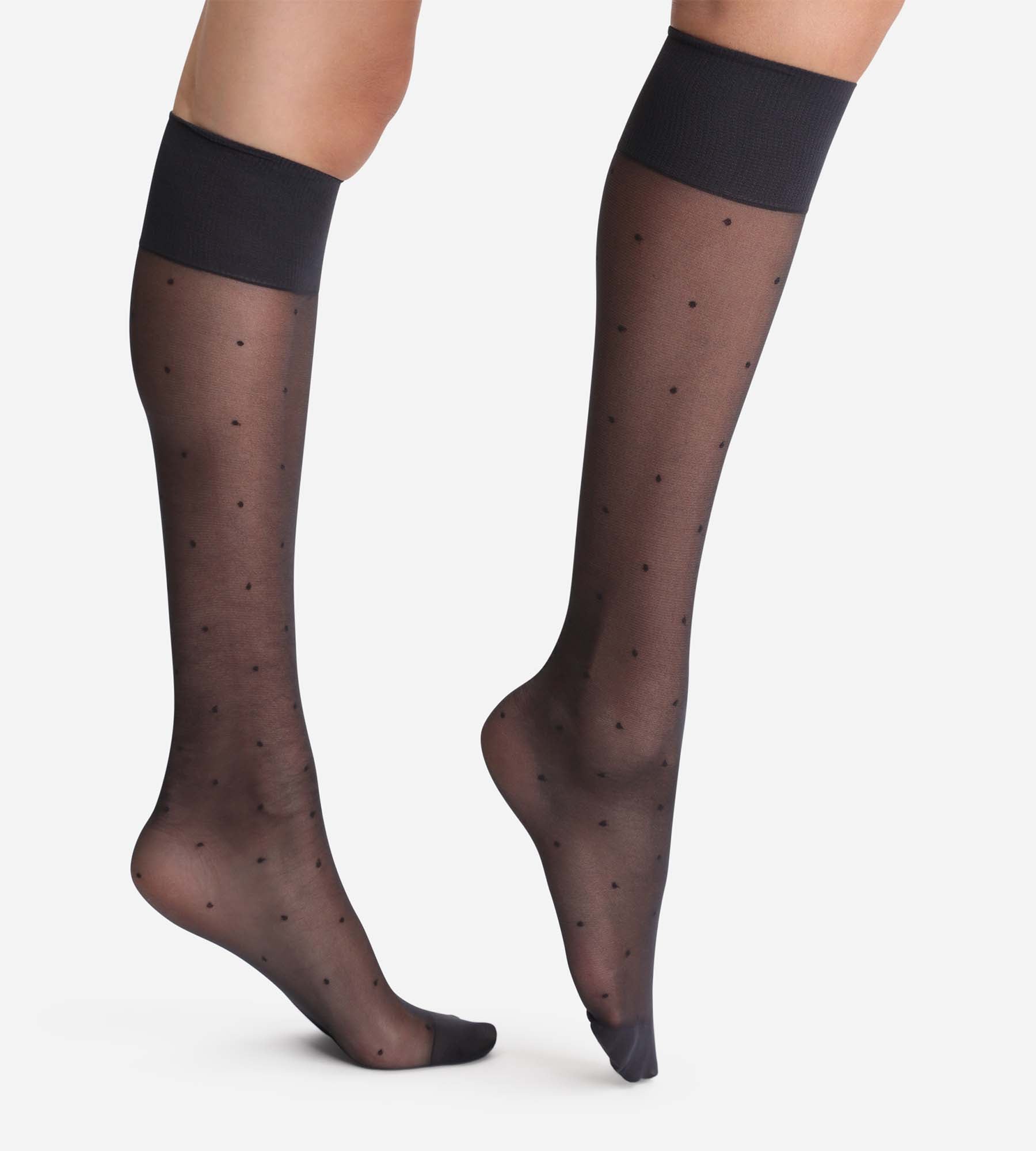Madame So DIM 15 dotted swiss patterned knee highs in black