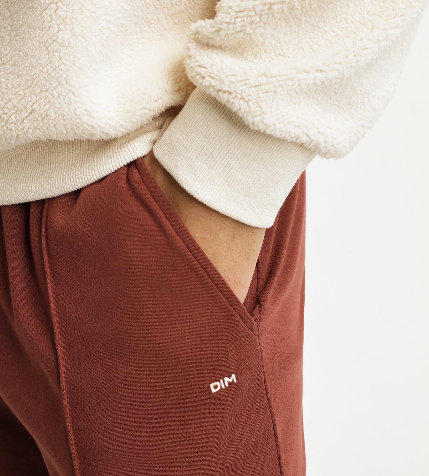 These Dim men's pyjamas combine a soft, warm wool-effect knit with a modern, relaxed fit. The top, with a high zip collar and thick ribbing, insulates against the cold while emphasising the build. The classic jogger trousers have two pleats at the front for added structure. With a stretch waistband, these pyjamas fit and move perfectly with you. The discreet embroidery on the top adds a sober, urban finishing touch.