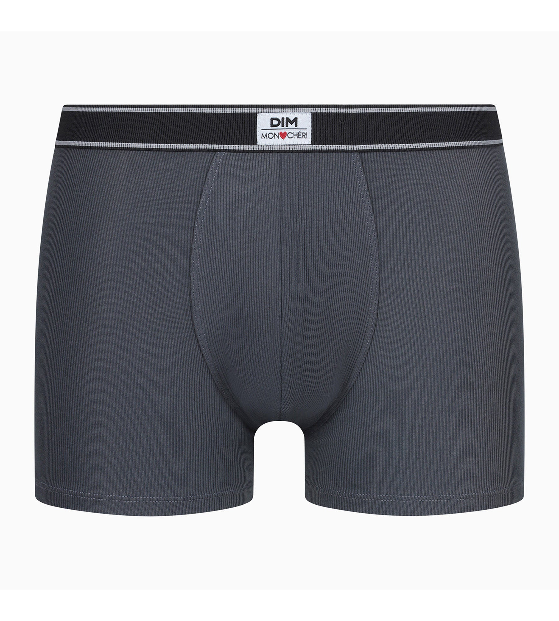 Made from a fine-ribbed modal cotton knit, Dim Élégant men's boxer shorts combine softness and breathability, making them ideal for everyday wear. The slim fit guarantees perfect support and flexibility. The black waistband adds a clean finish and contrasts subtly with the Granite Grey for a touch of modernity.