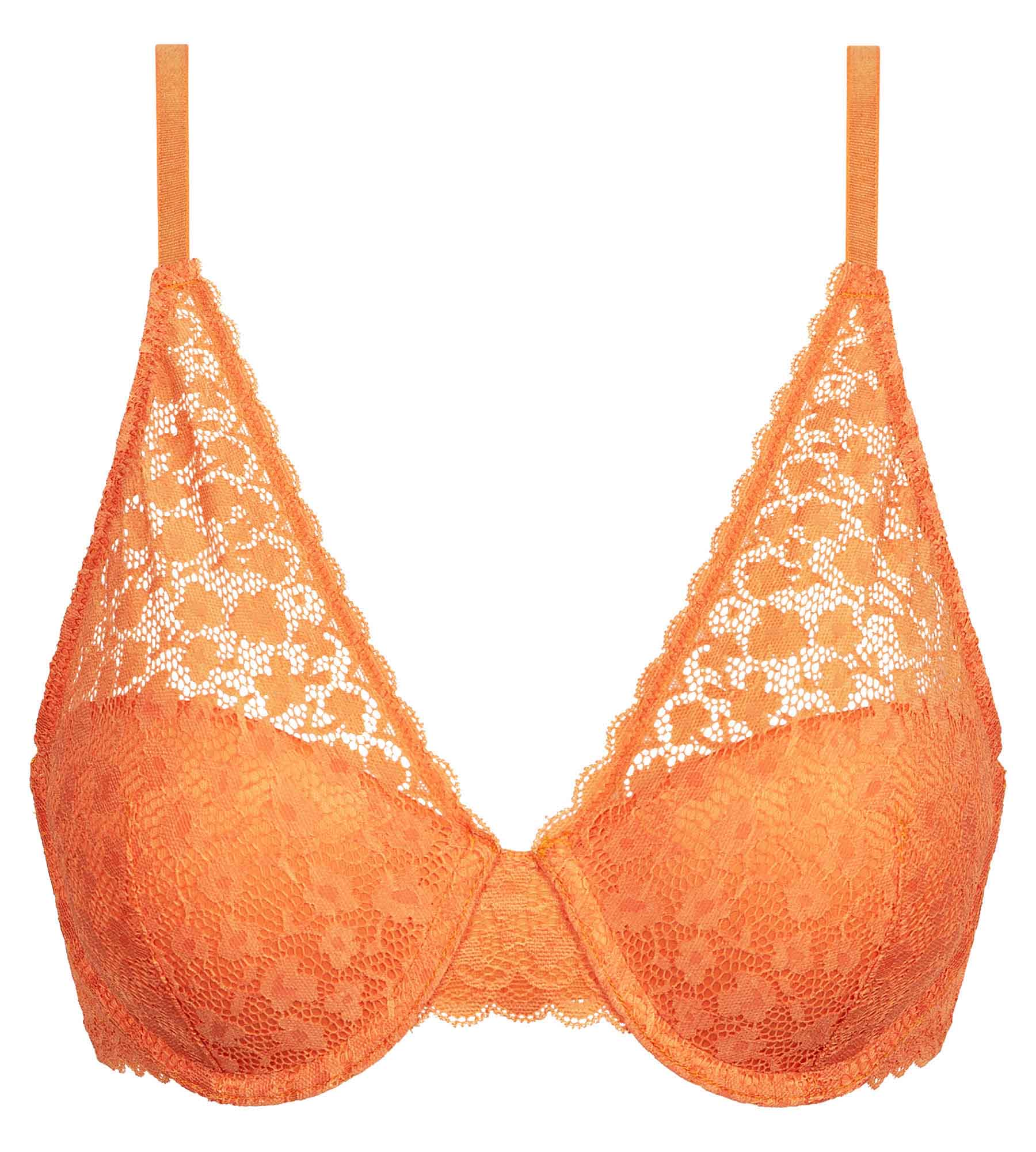 Give your neckline a refined, tangy glow with the Daisy Lace underwired scarf bra in orange floral lace!
