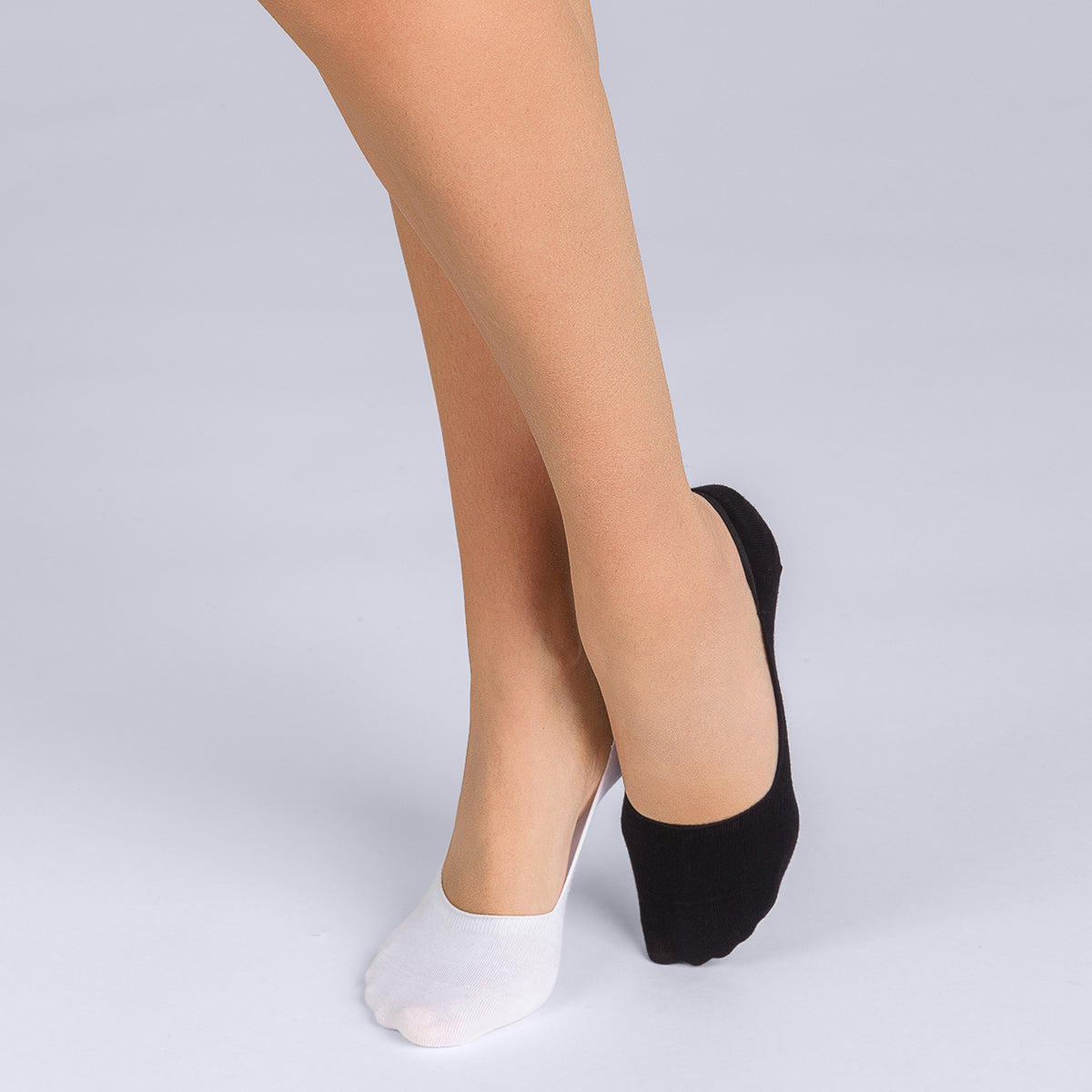Pack of 2 pairs of Femme Basic Coton black and white cotton footies for women