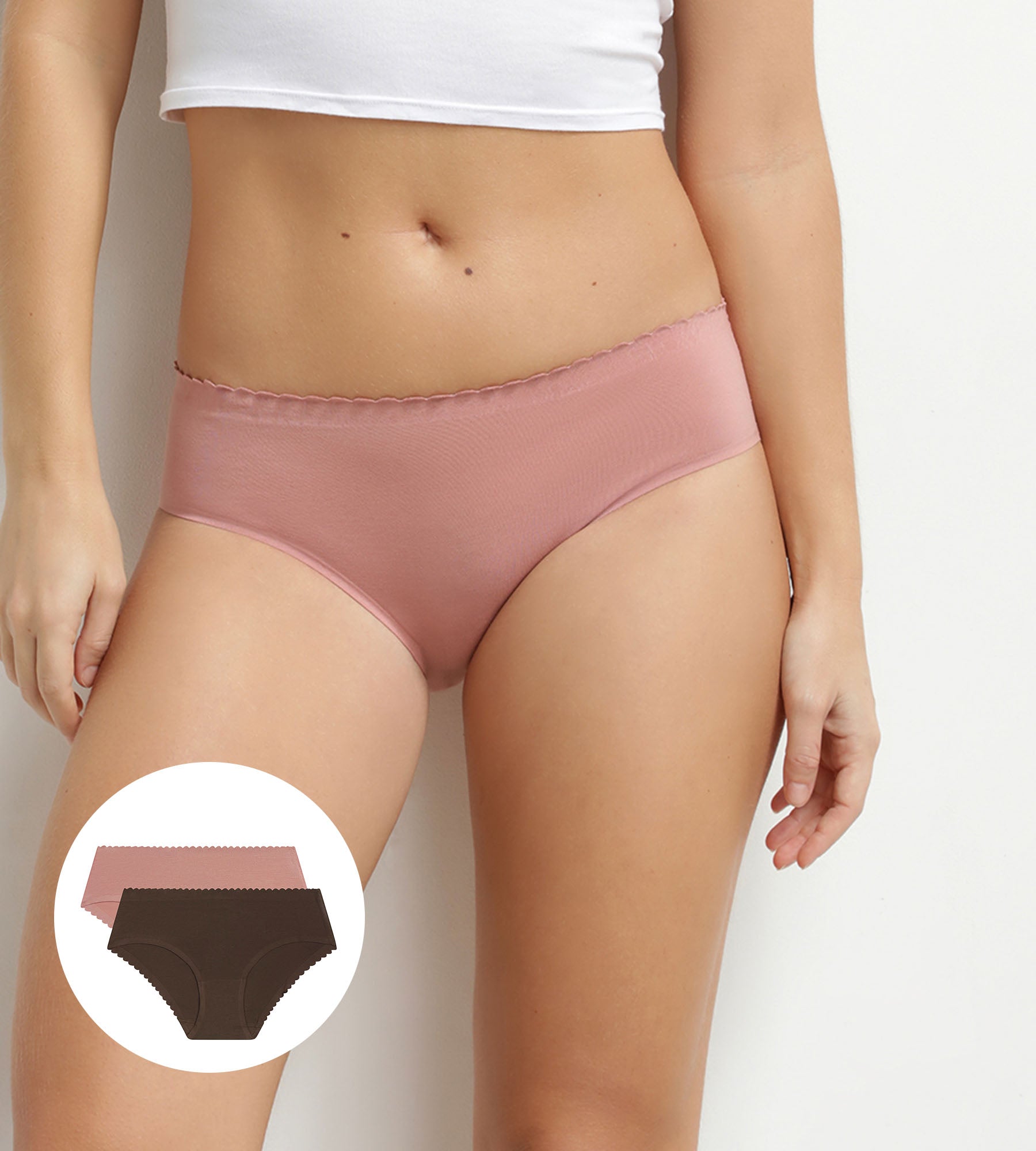 Pack of 2 women's stretch cotton briefs in Brown Pink Body Touch