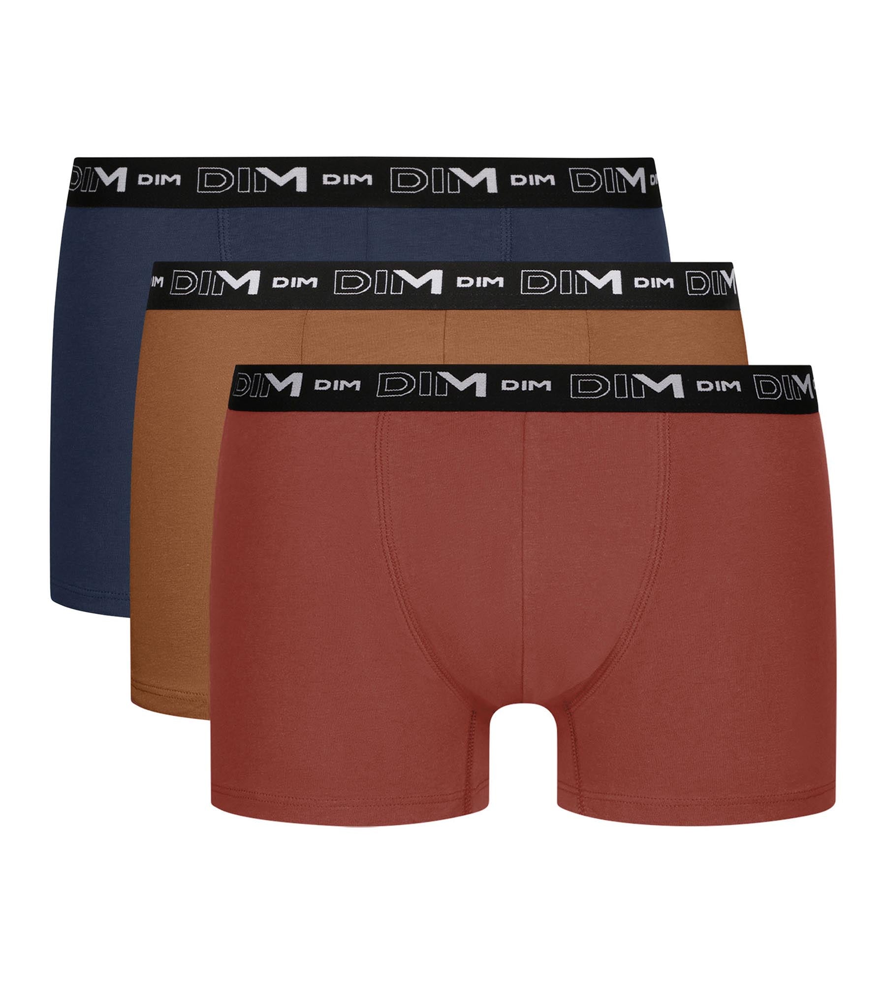 A mix of trendy colours and an ultra-comfortable design: this Pack of Dim men's boxers is your everyday ally! Each pair of men's boxers is made from super-soft stretch cotton, guaranteeing total mobility, all day long. The elasticated waistband, front reinforcement and close-fitting cut offer excellent fit, while remaining discreet. When it comes to style, we love the current colours: a vibrant coral, a warmer ochre and a deep midnight blue. The black belt with graphic logo contrasts the ensemble for a modern look.