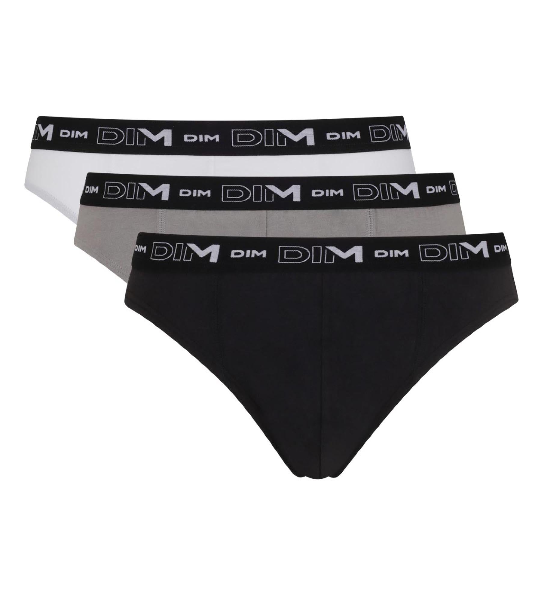 Pack of 3 pairs of black, grey and white stretch cotton briefs for men