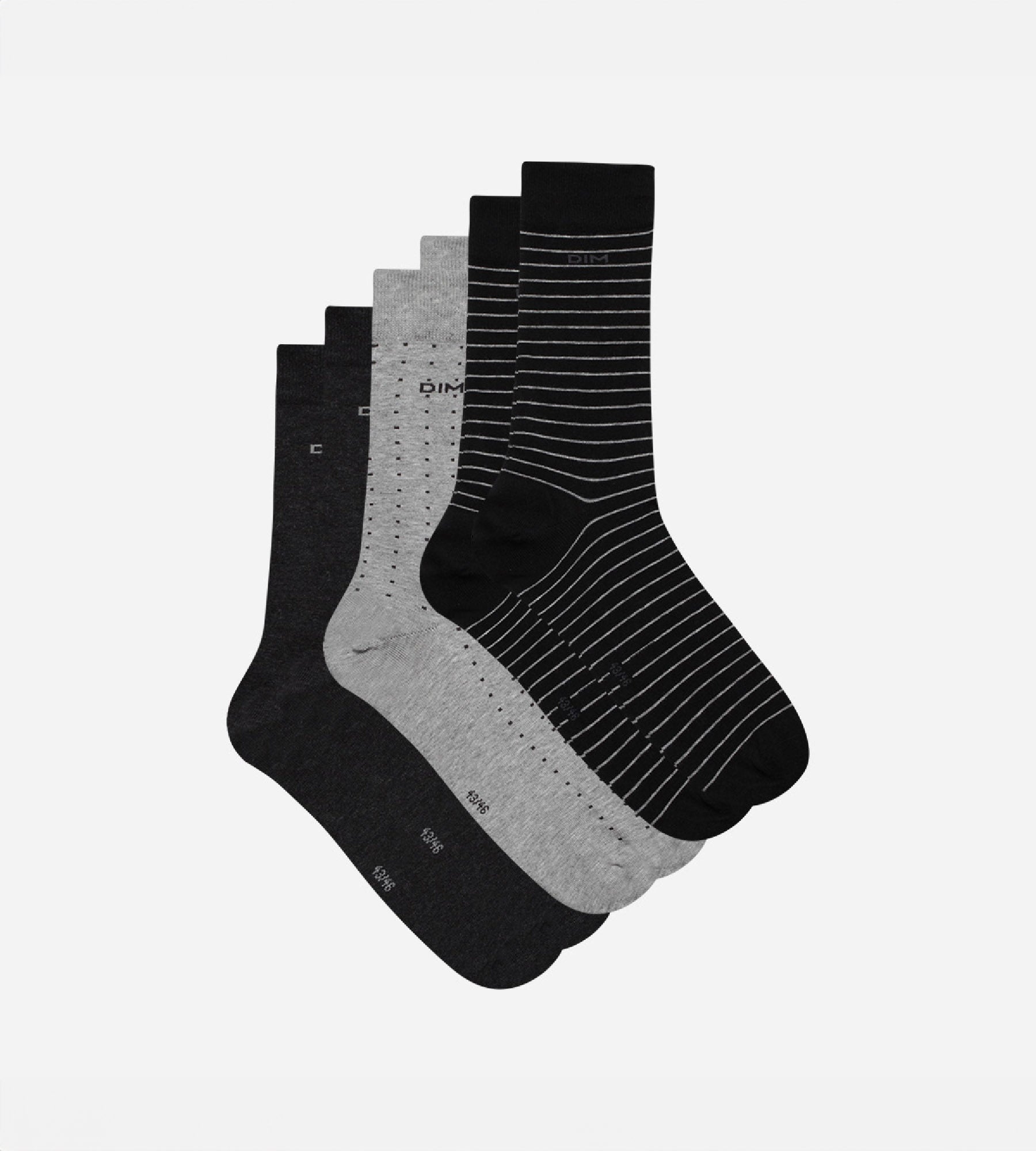 Pack of 3 pairs of men’s black and charcoal dotty & striped socks