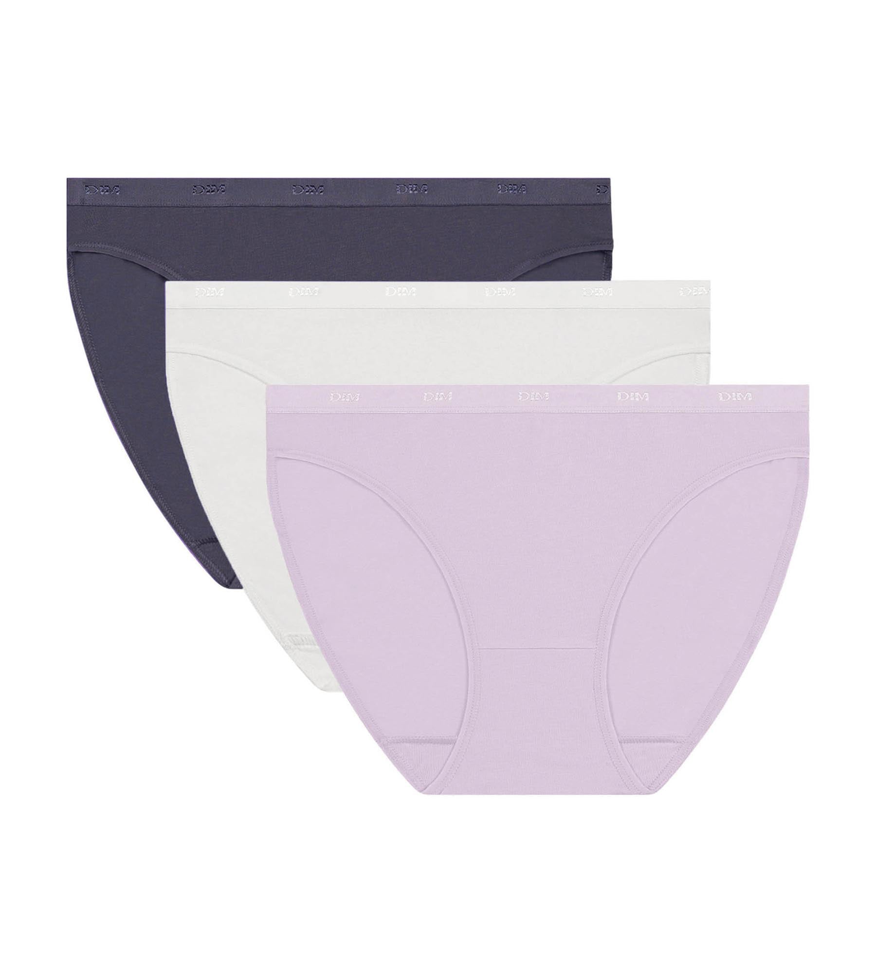Combine comfort and femininity with the Les Pockets EcoDim Pack of 3 women's stretch cotton panties in Lila, White and Blue.
