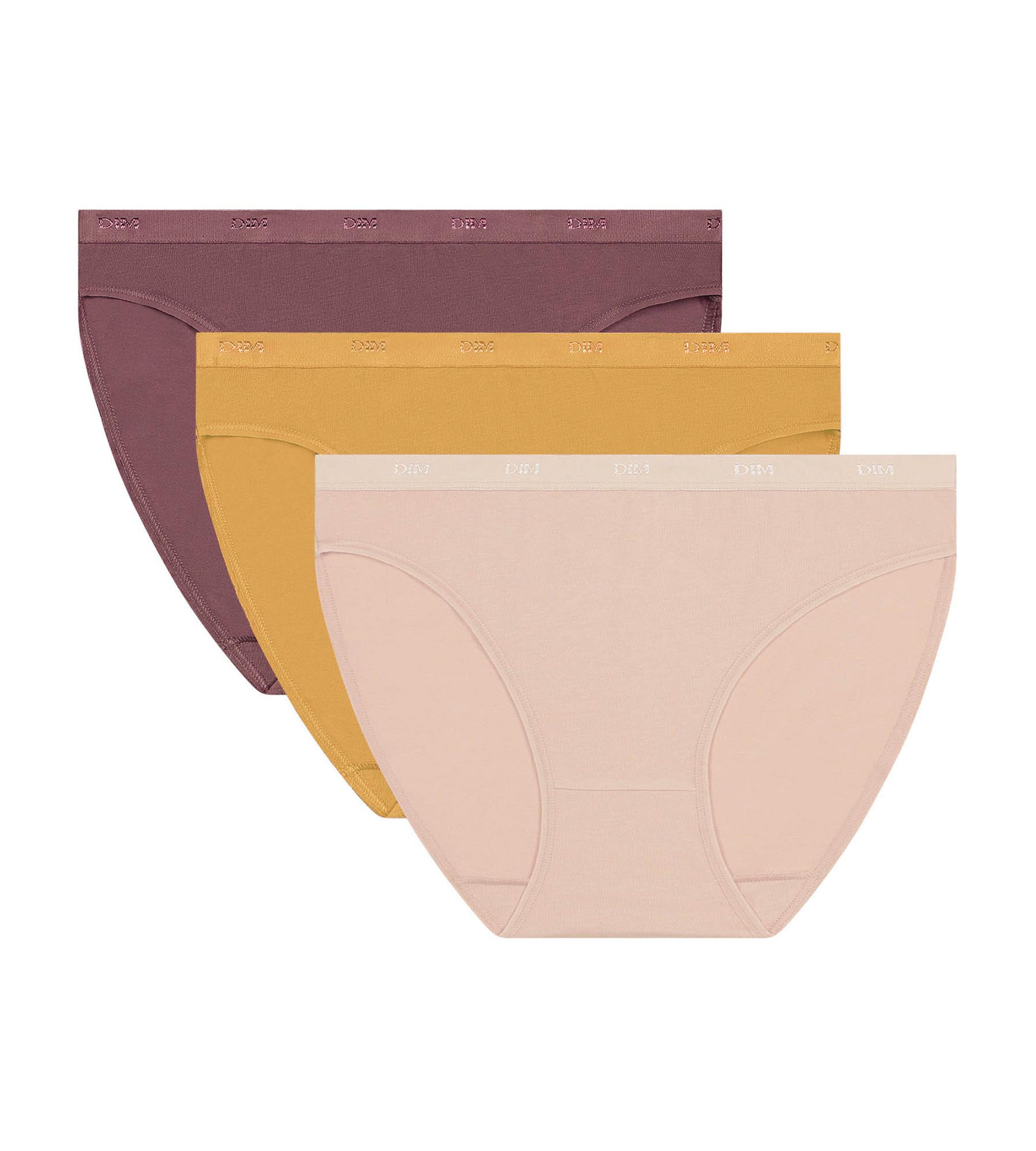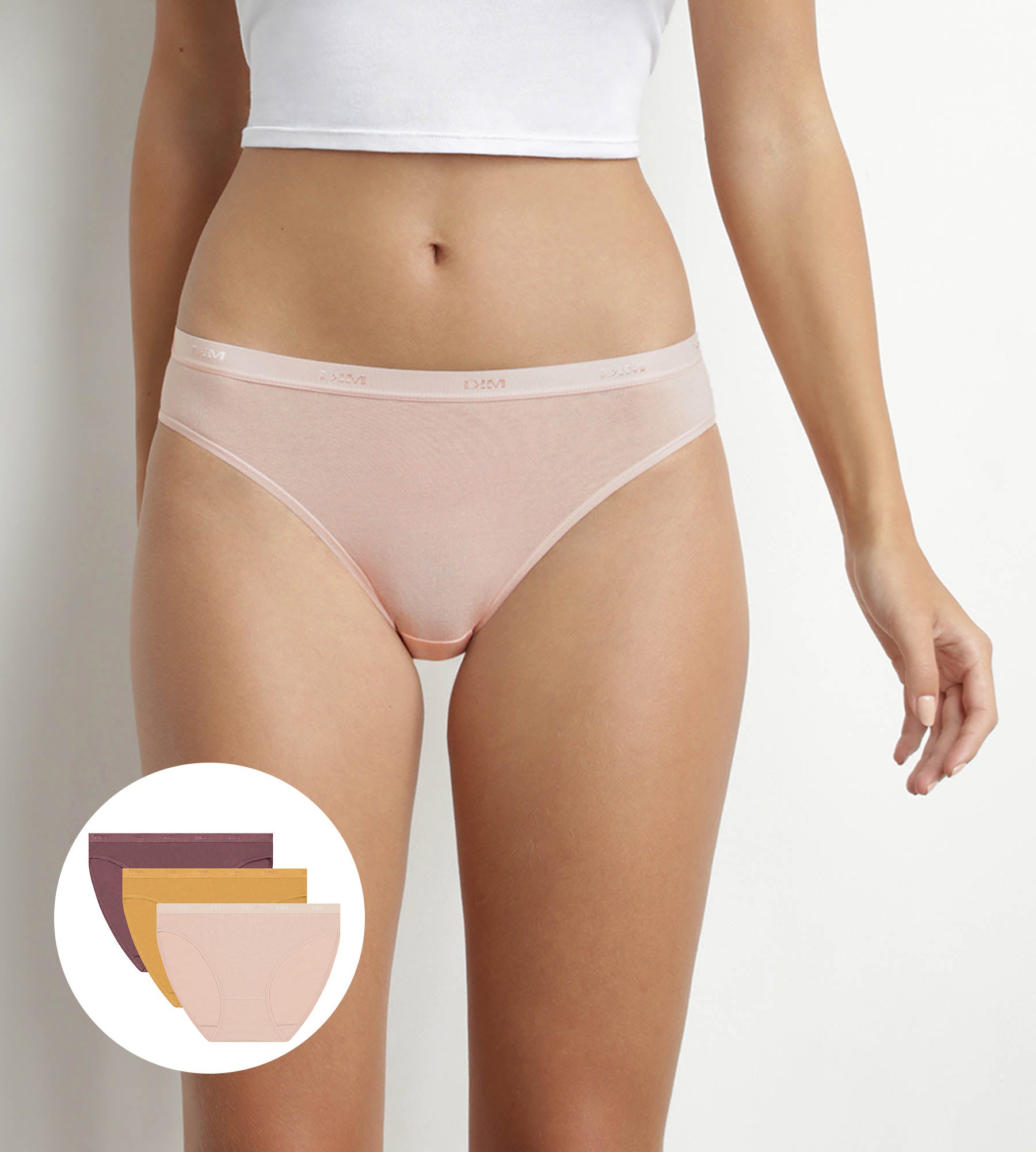 Adopt a luminous look with the Les Pockets EcoDim Pack of 3 women's stretch cotton panties, in shades of Yellow, Pink and Brown!