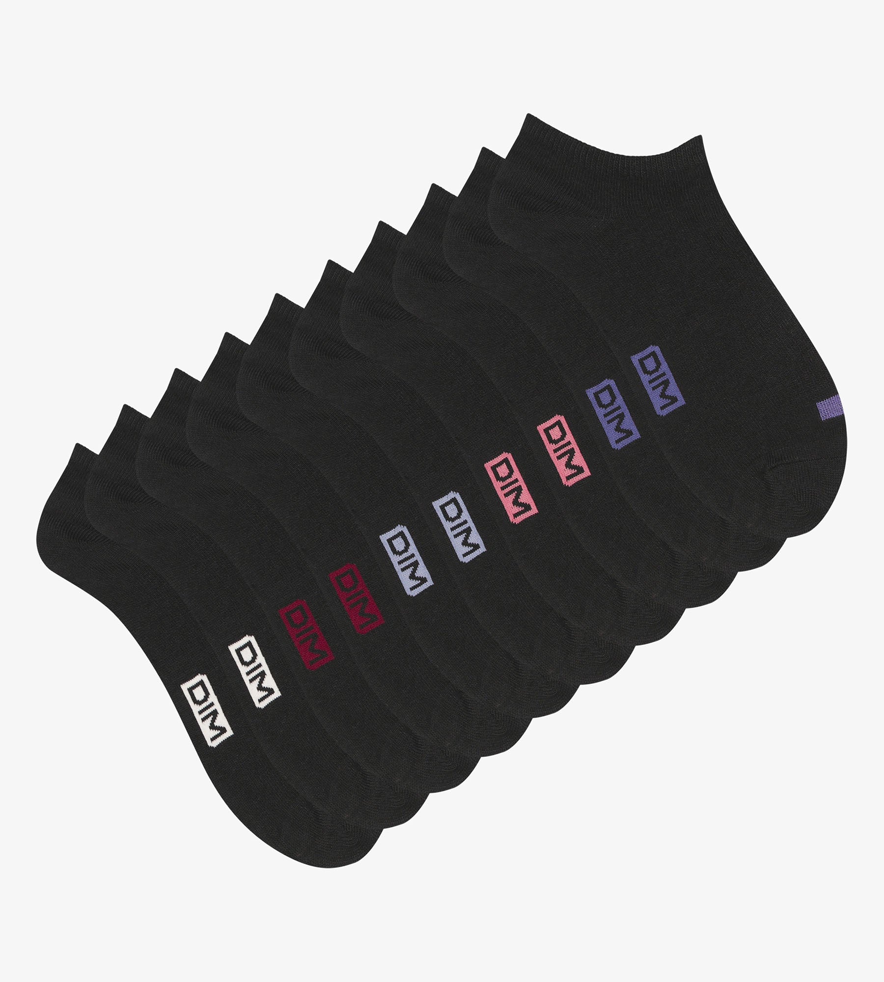 Designed in breathable cotton with a stretchy ribbed hem, these EcoDim women's socks are ideal for all-day wear in comfort and discretion. In sober black, enhanced by a different-colored dot on the front, EcoDim women's low socks are easy to integrate into your wardrobe and store away effortlessly.