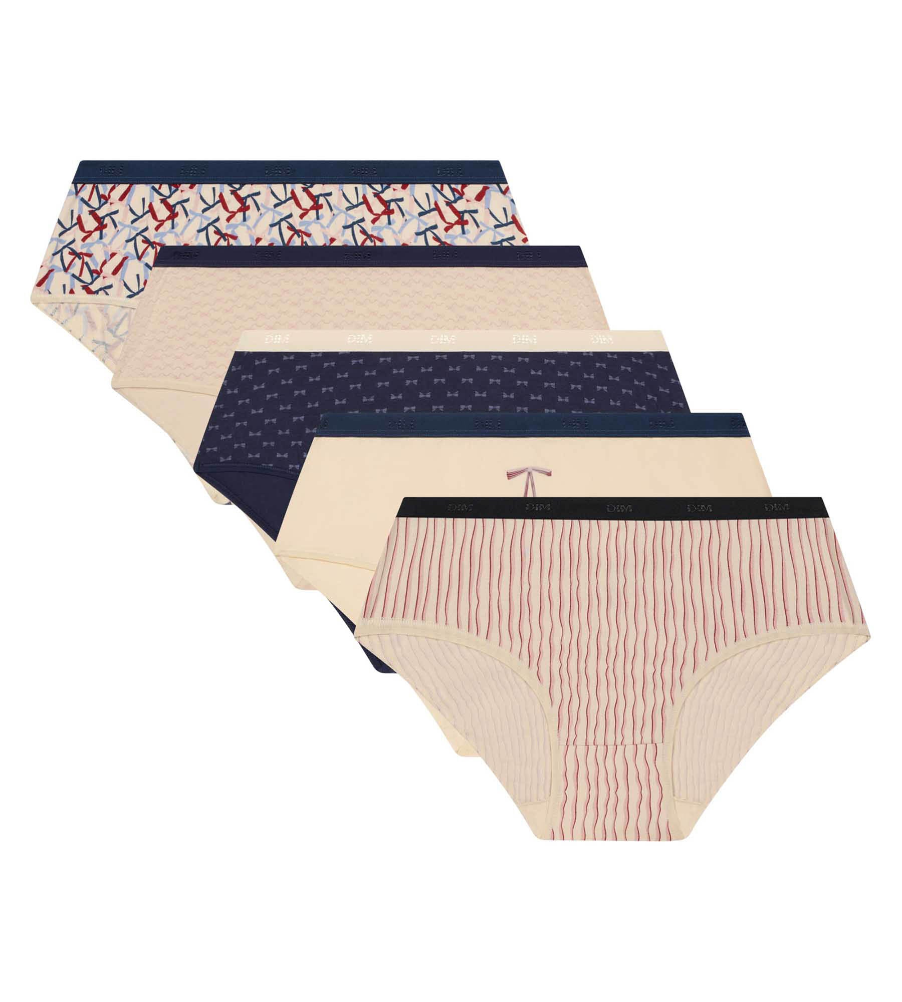 Composed of five cotton women's boxer shorts with a revisited ribbon theme in pastel pink, beige and navy blue, this pack of 5 Les Pockets women's boxer shorts relies on variety, with its delicate undulations or abstract confetti-like prints. Made from supple stretch cotton with eacute;lastic finishes, the Les Pockets women's boxer shorts eacute;perfectly the silhouette and stay in place with softness.