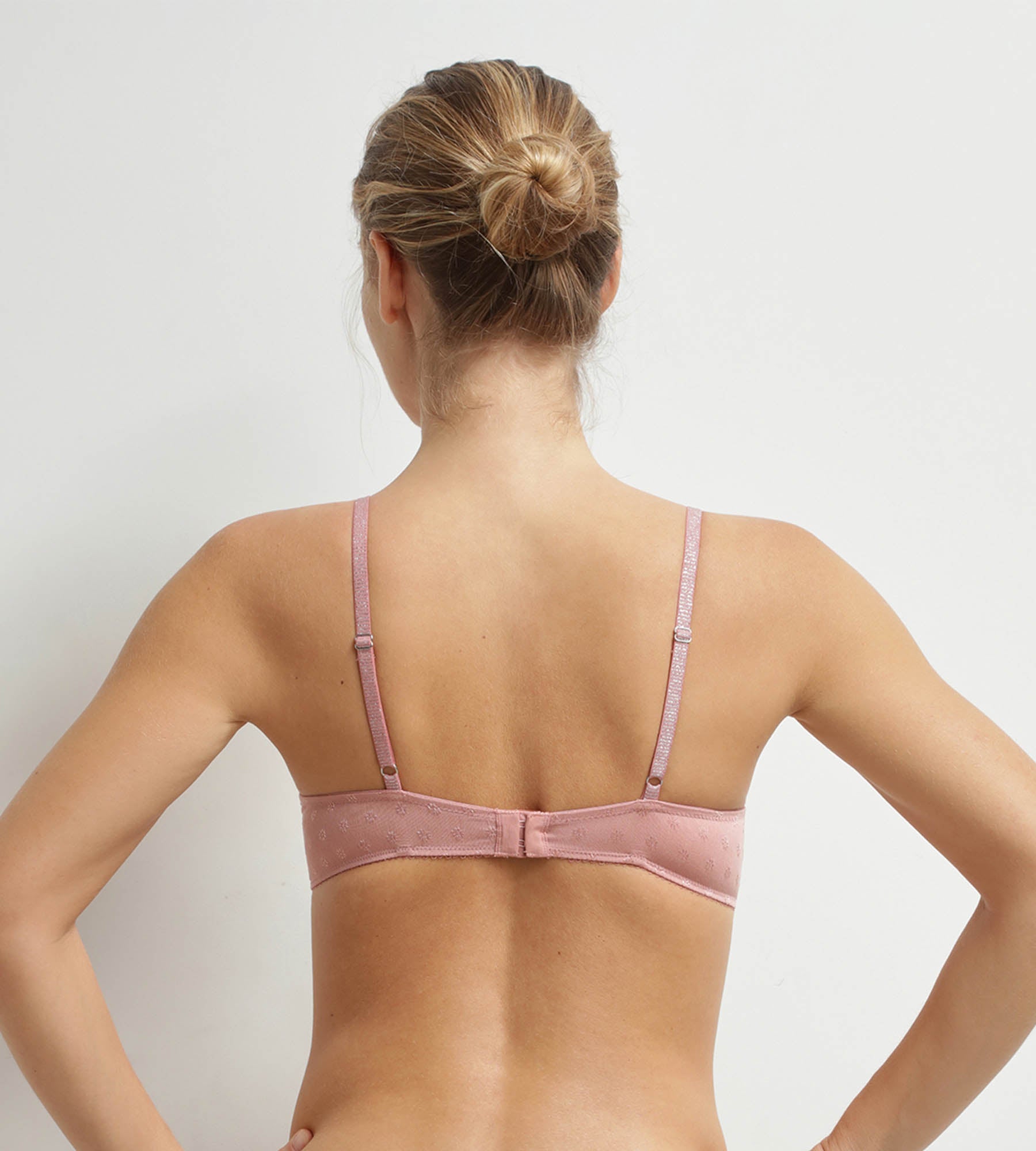 Padded wireless triangle bra in floral pink microfibre – Cosy Time