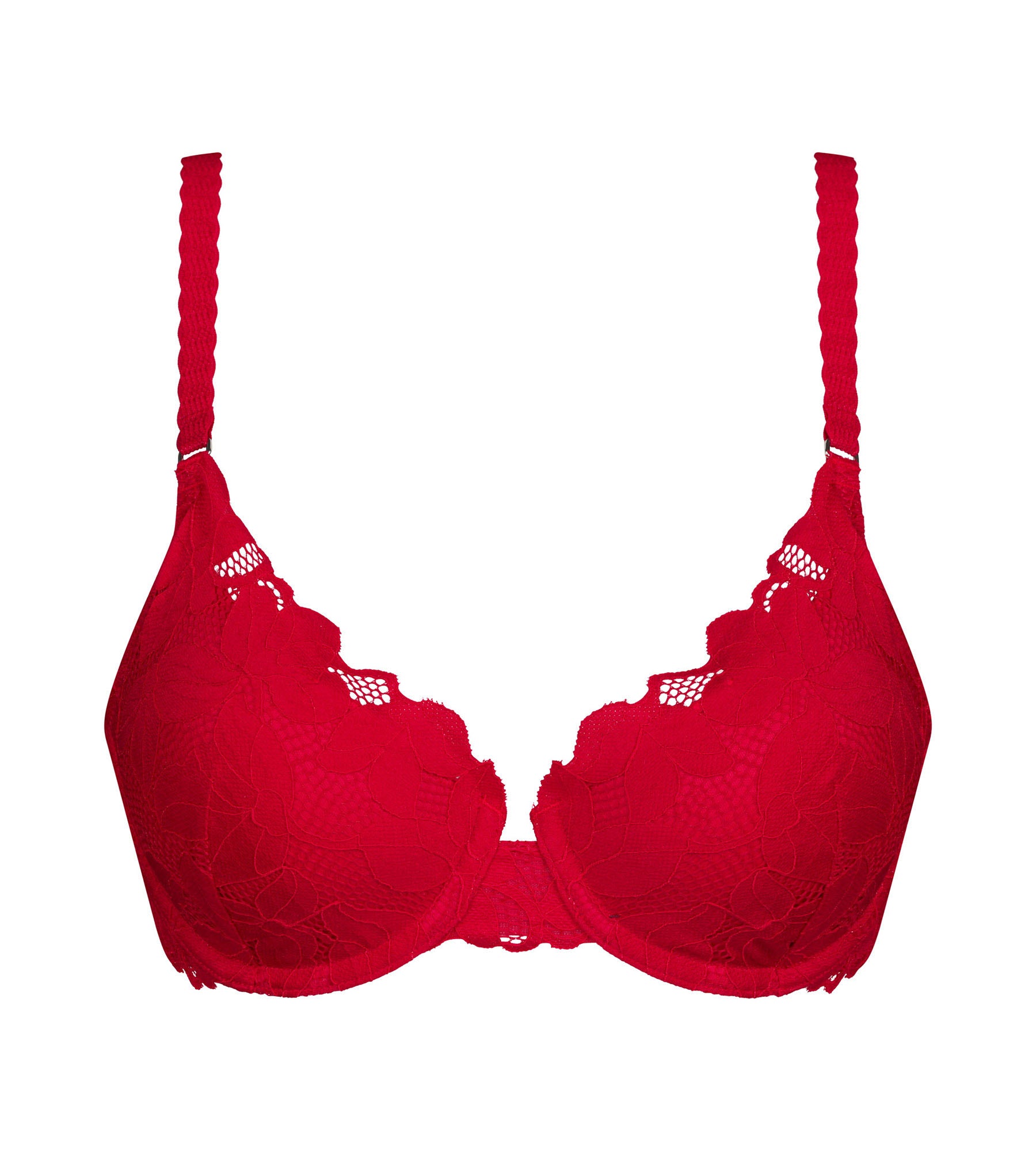 Reveal your glamorous side with the Dim Lacy corbeille bra in Rouge floral lace!
