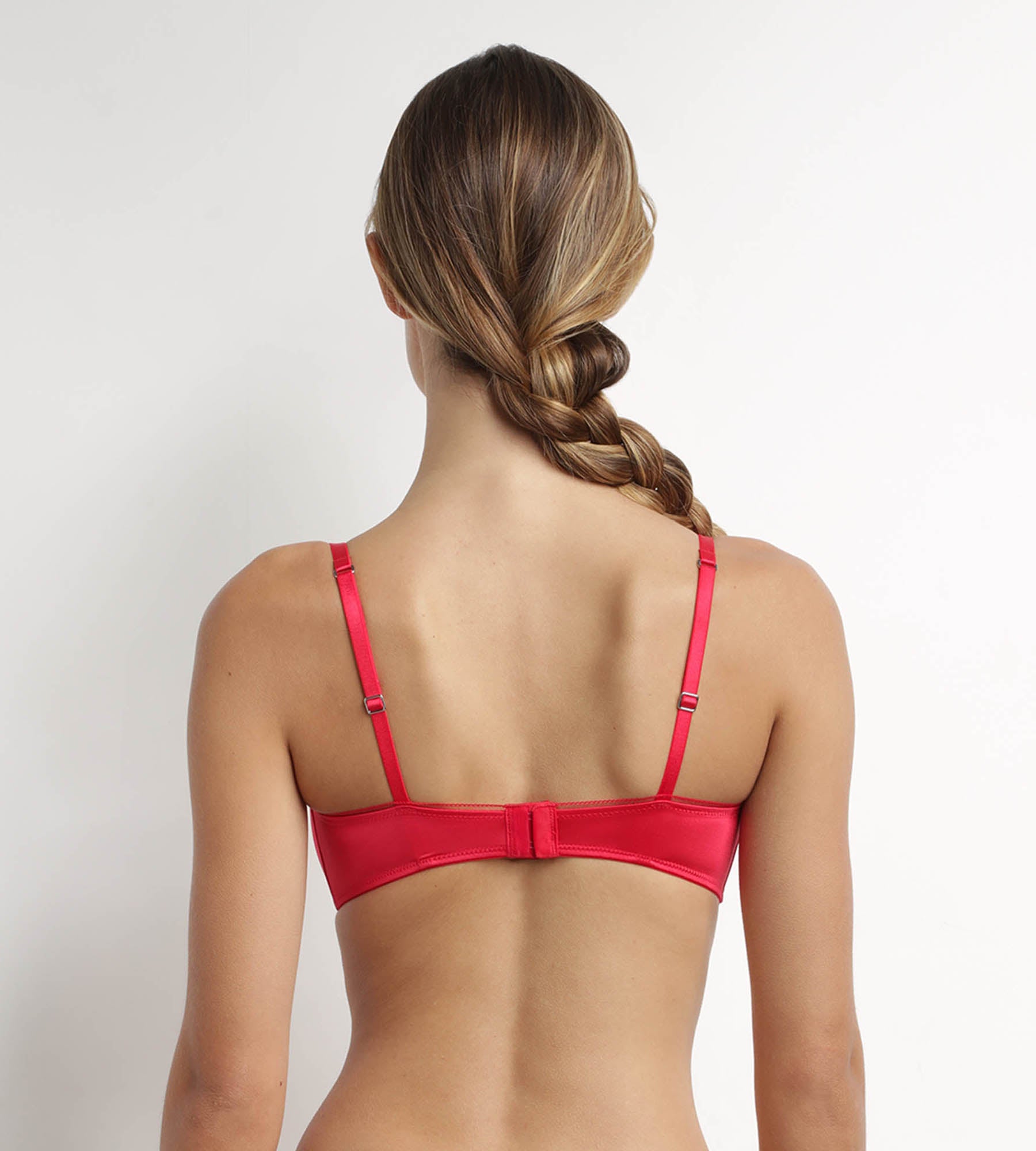 Red satin microfiber underwired bandeau bra Dim Chéri