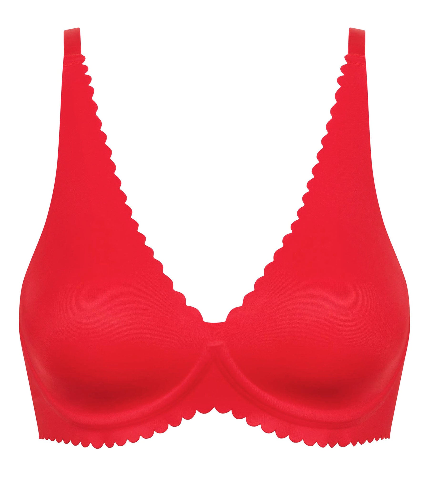 Pair this red Dim Body Touch bra with the Body Touch invisible women's brief for an ultra-comfortable set.