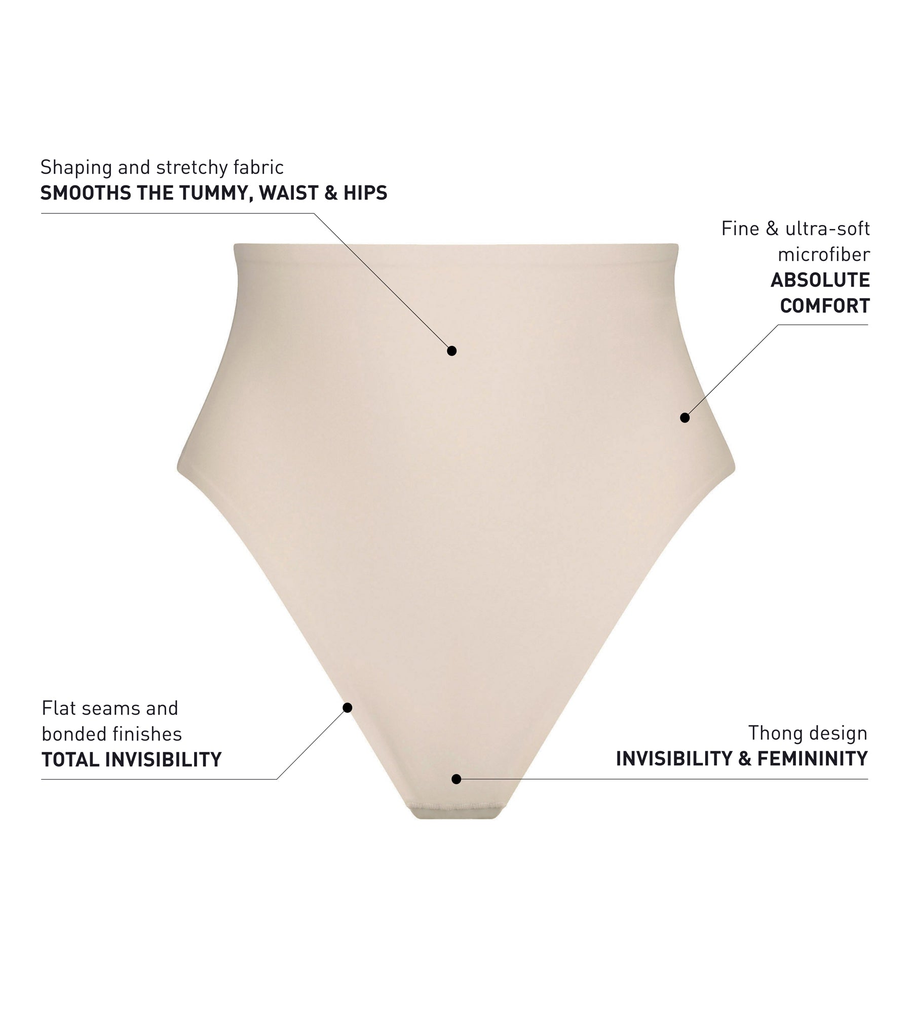 - TOTAL INVISIBILITY: Thanks to its fine microfiber and bonded edges, this high-waisted thong stays completely invisible under your outfits.