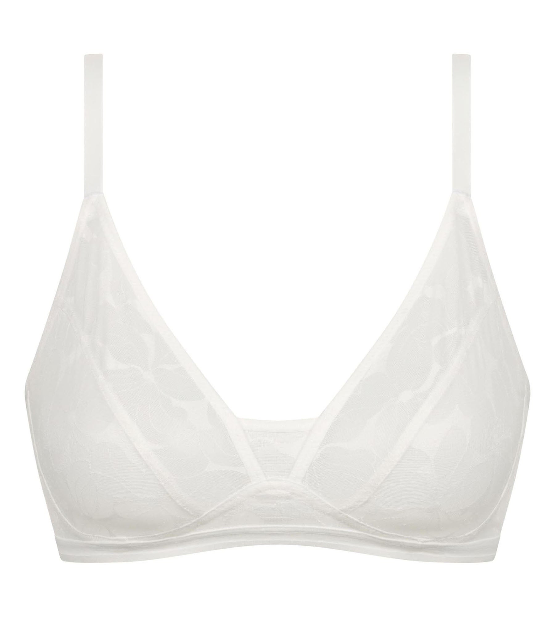 Light look and discreet support with the Dim Bloom White floral lace non-wired triangle bra.