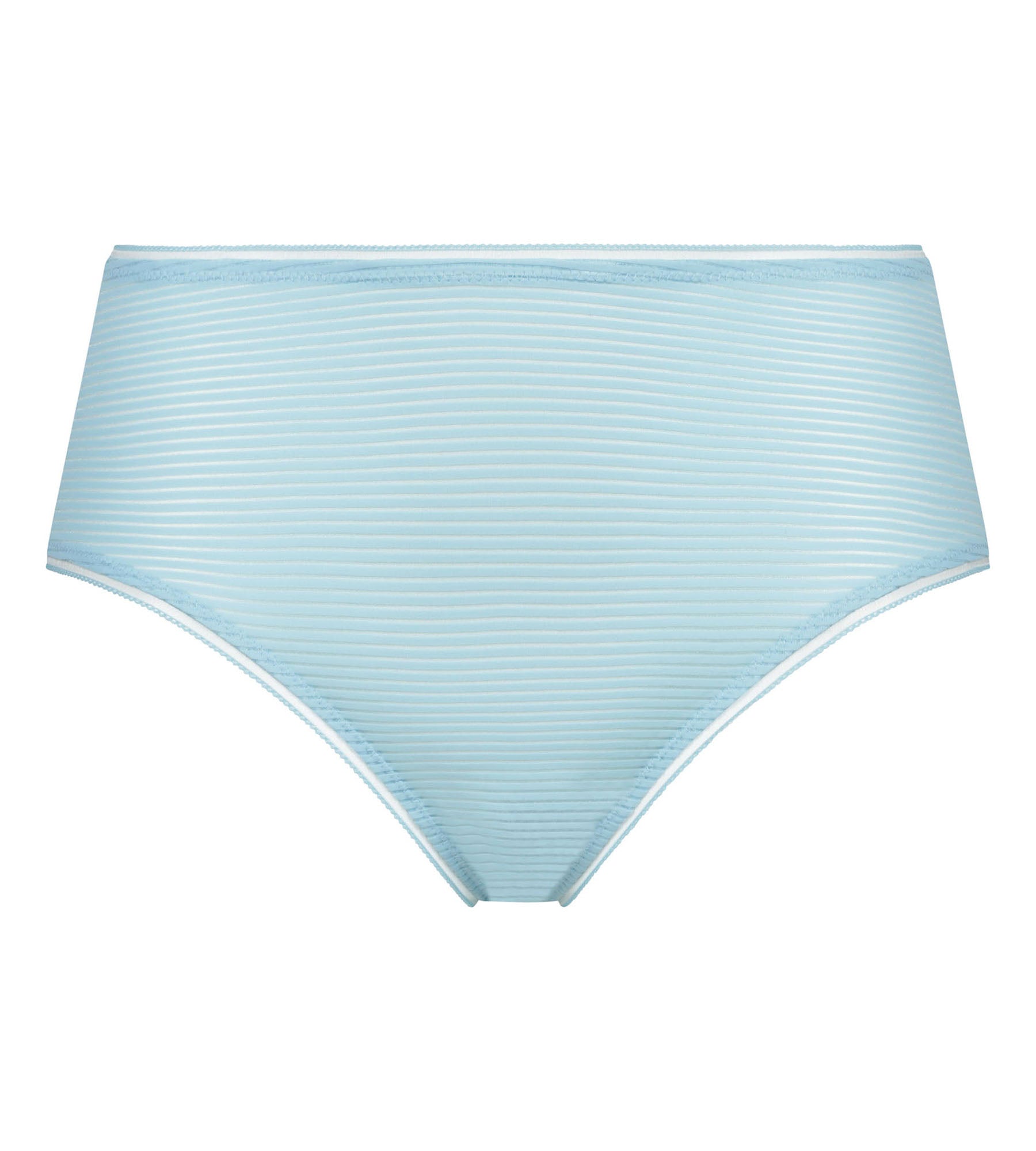Thoughtfully designed for everyday wear, the Dim x Inès de La Fressange high-waisted knickers in Shirt Blue offer the perfect balance of style and comfort. The light, elastic fabric follows the body's movements and lets the skin breathe. The horizontal stripes play on transparency for a sober, contemporary look. Thanks to its high-waisted cut, the Dim x Inès de La Fressange knickers shape the waist without marking it, while the cotton bottom guarantees greater comfort throughout the day.