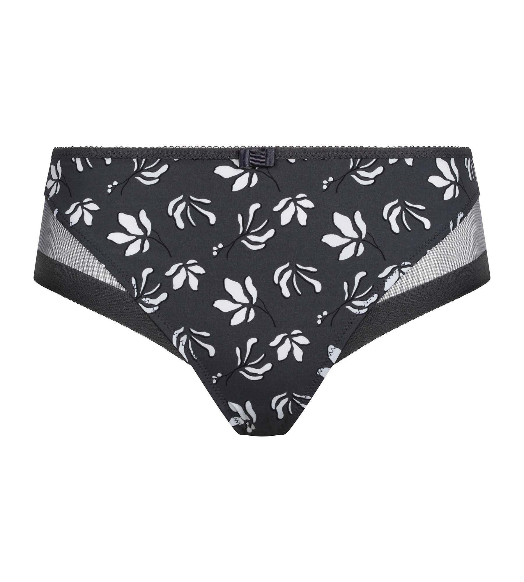 For a refined, modern look, adopt the Generous Essentiel women's panty in Anthracite microfiber and tulle, with Blue floral motifs!
