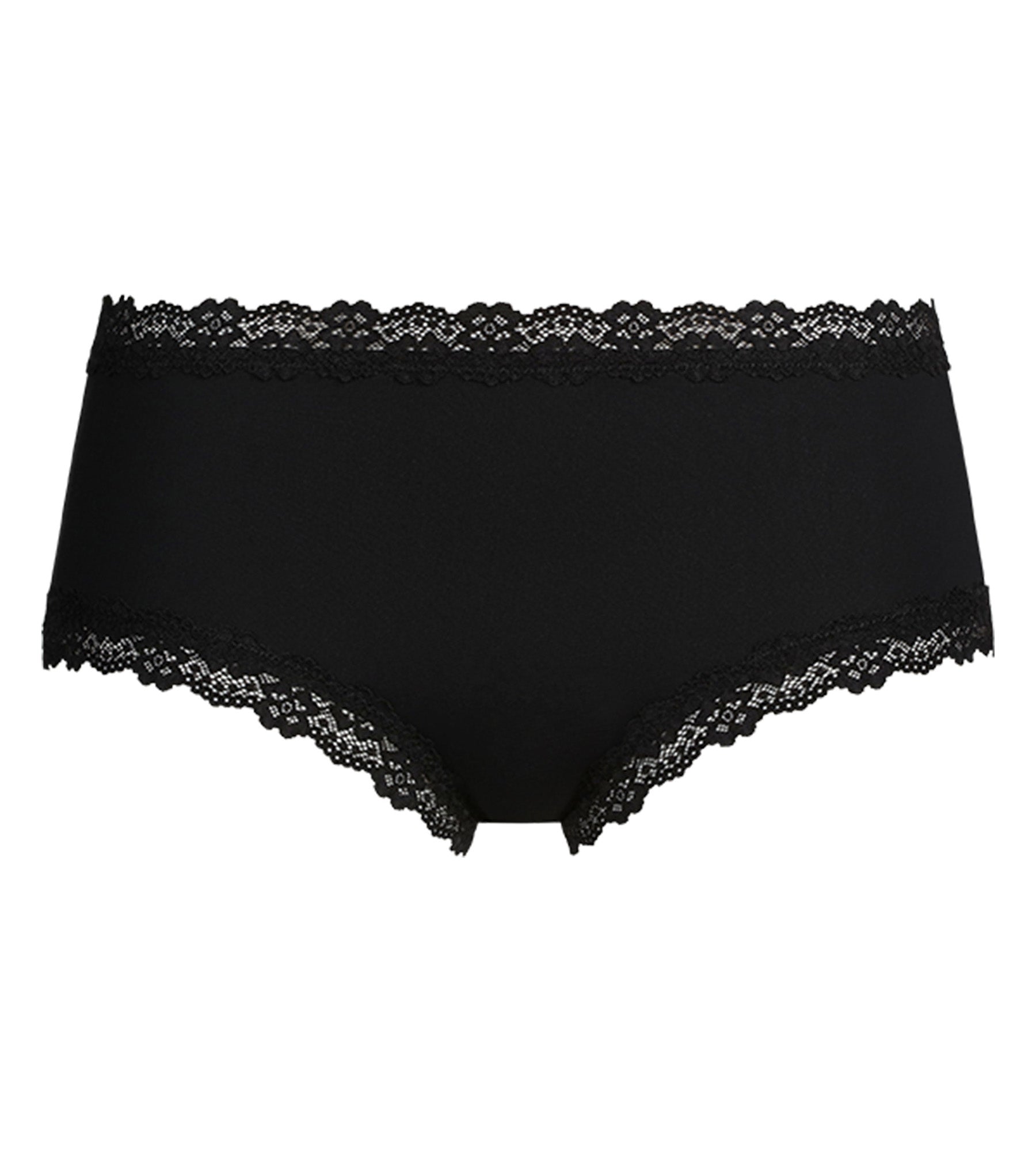Made from stretch microfibre, these women’s briefs adapt to your shape and move with you. The briefs style provides more coverage and support. In black, these women’s boxer shorts can be worn under any outfit, from the simplest to the most formal. The lace trim adds a discreet feminine touch without weighing down the silhouette. These lace shorts from the Microfibre Mini Lace range meet everyday expectations: immediate comfort, light support and neat finishes.