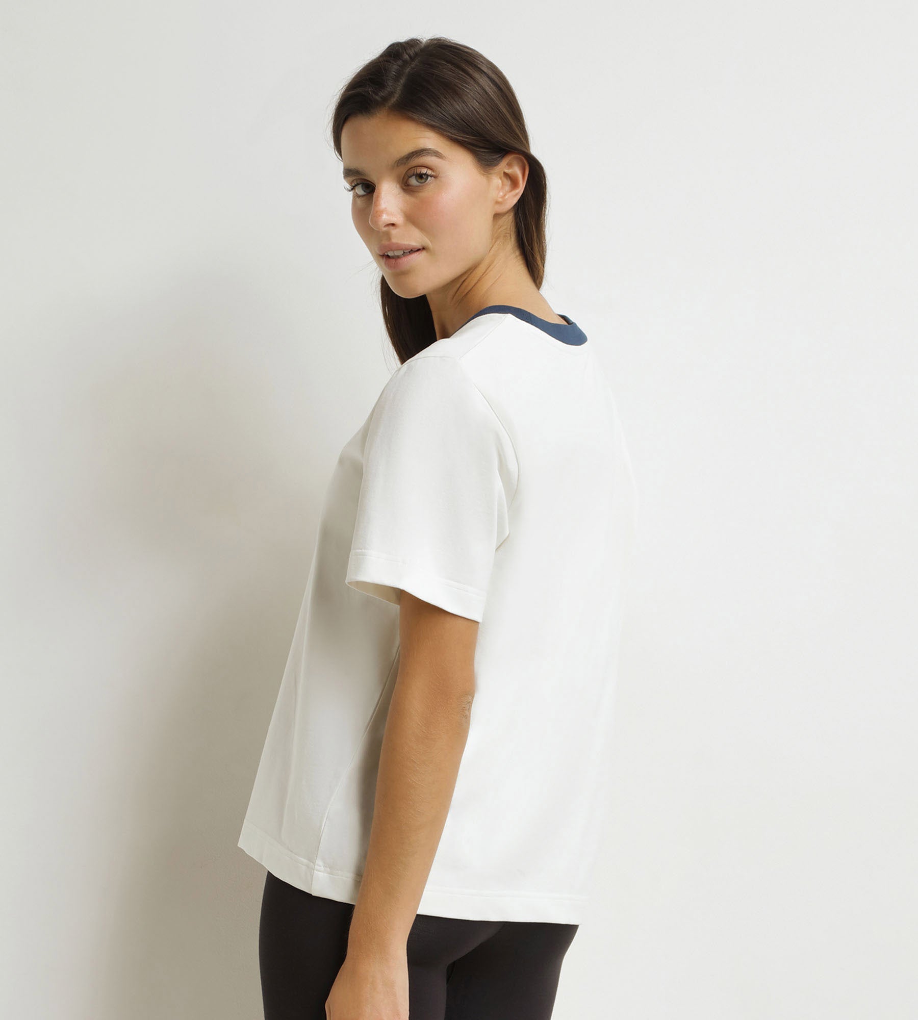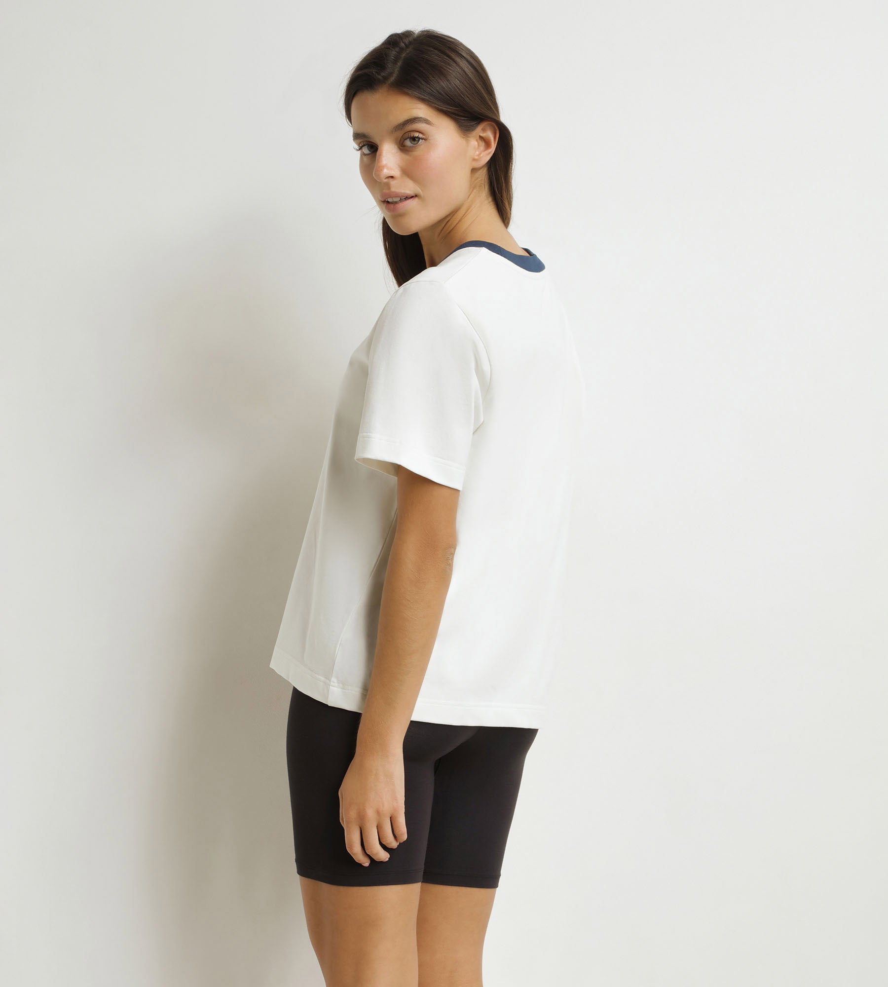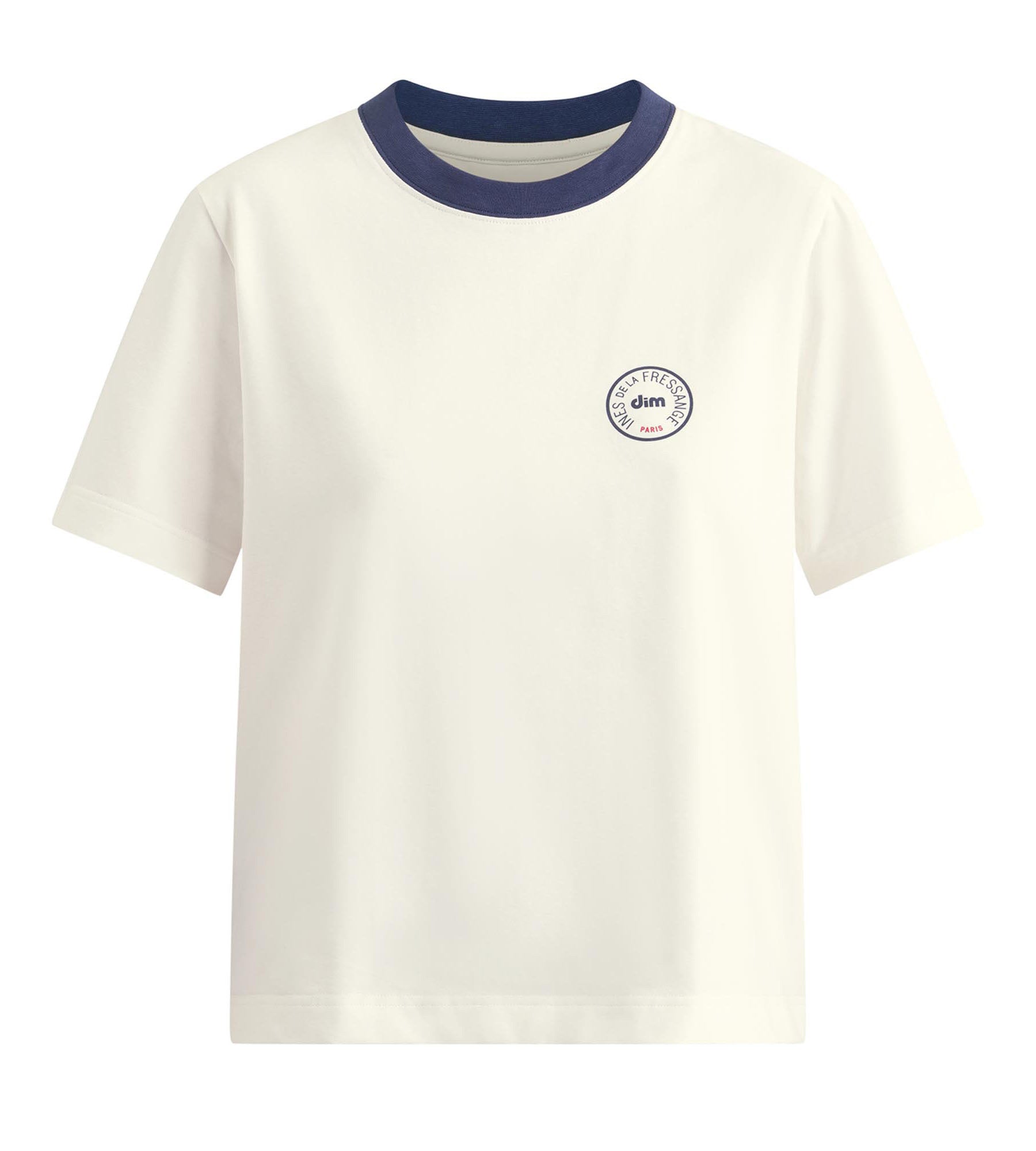 Adopt the casual look of the Dim x Ines de La Fressange mother-of-pearl women's t-shirt, between modern comfort and meticulous details.