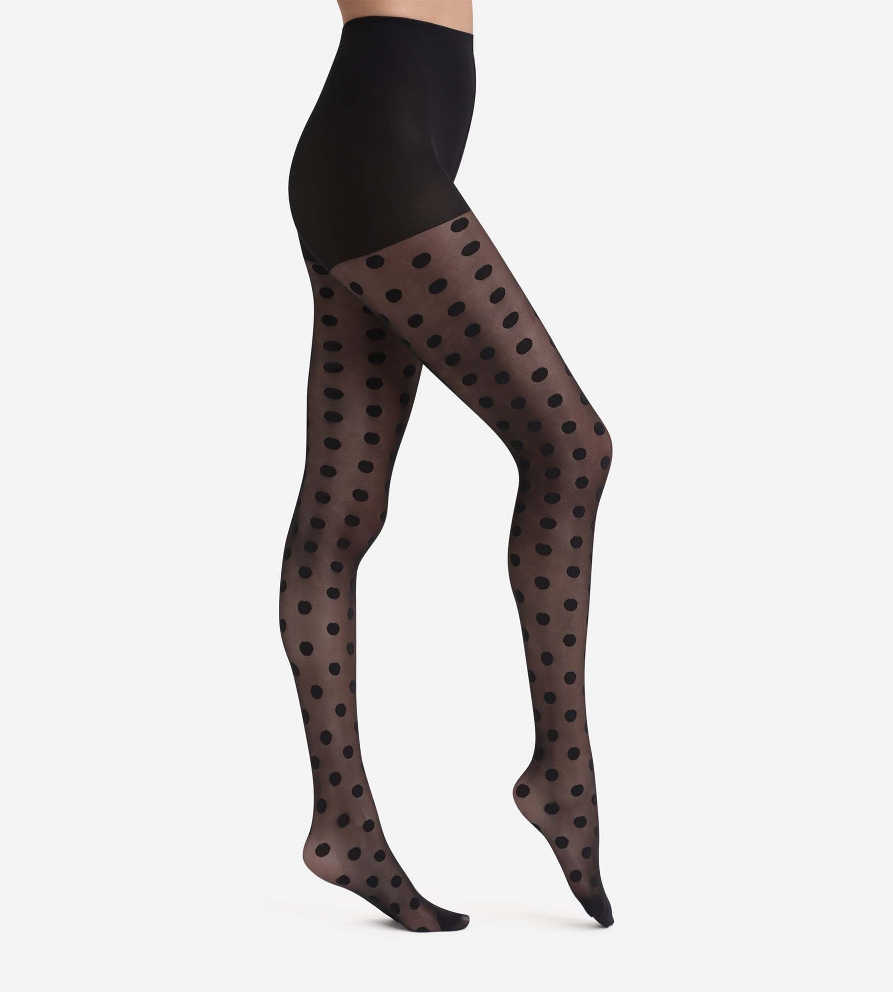 Fall for the iconic look of Dim Style Noir sheer tights with large polka dots!