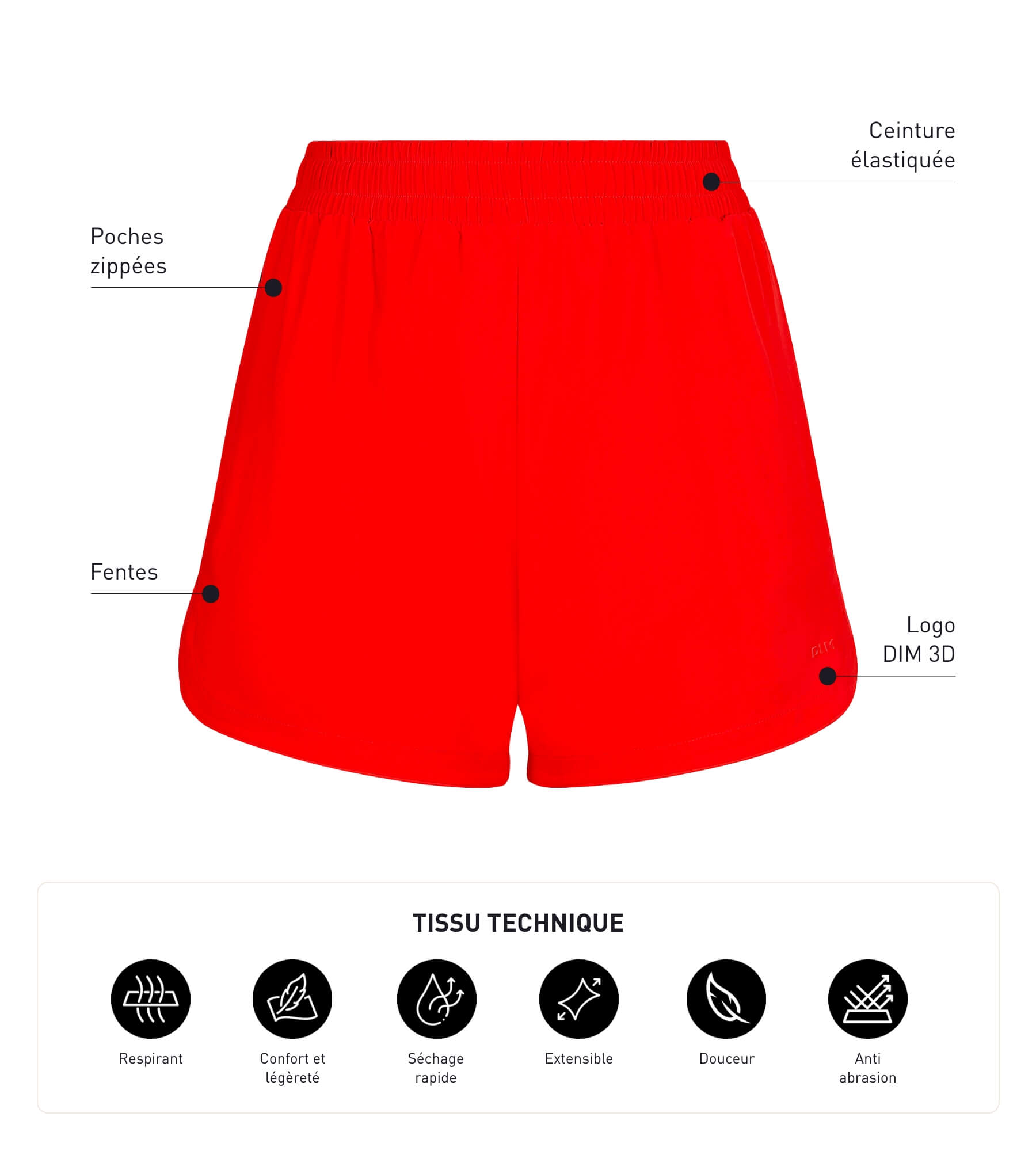 With its skin-breathing lightweight viscose fabric and short cut, the Dim Move women's shorts are the perfect accompaniment to all your sessions with ease. Featuring side slits and an elasticated waistband, the Dim Move Women's Shorts offer real freedom of movement, even for the most dynamic workouts. You'll love the sewn-in pockets, which keep your essentials close at hand, and the acid orange colour, which boosts your outfit.