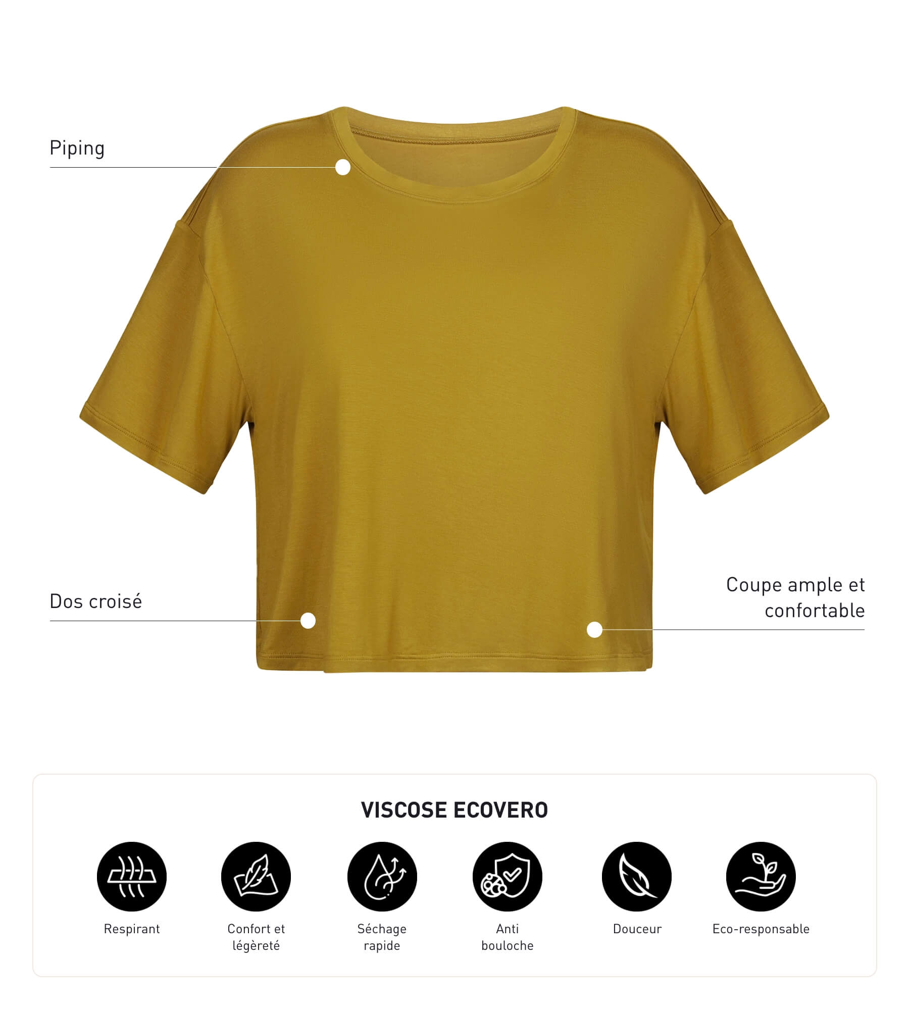 To be layered with our bras and sports bras, The Dim Move oversized women's t-shirt completes your outfit with style and lightness! Its loose fit, technical fabric and open back provide optimum ventilation and maximum flexibility. In Olive Green, the Dim Move women's sports t-shirt is on trend, and will give your workout a boost!