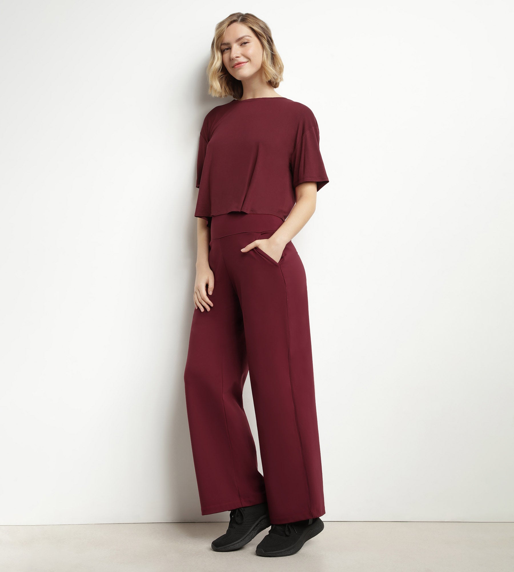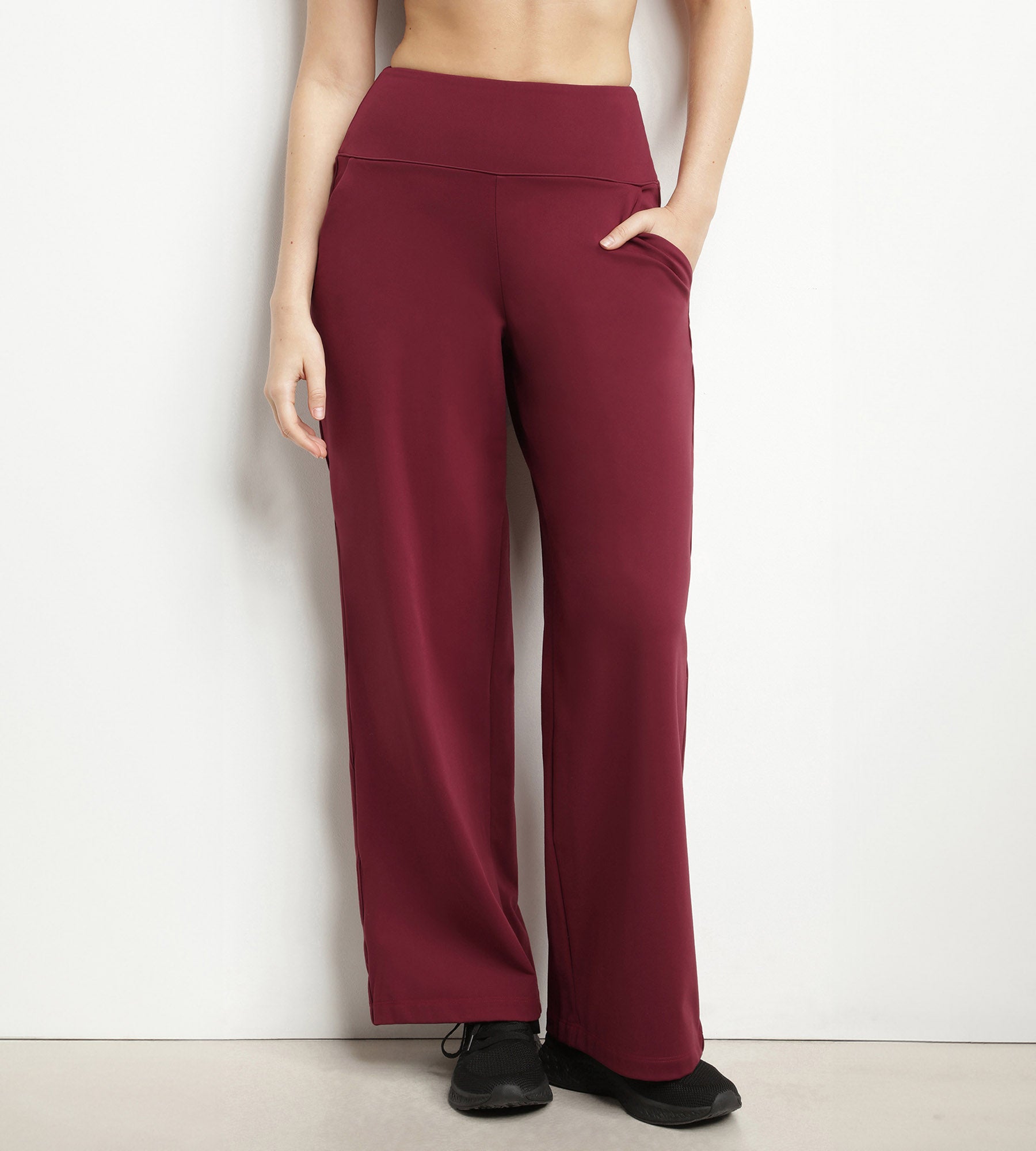 Get an urban, high-performance look with the Dim Move women's wide-leg sports trousers in Bordeaux jersey!